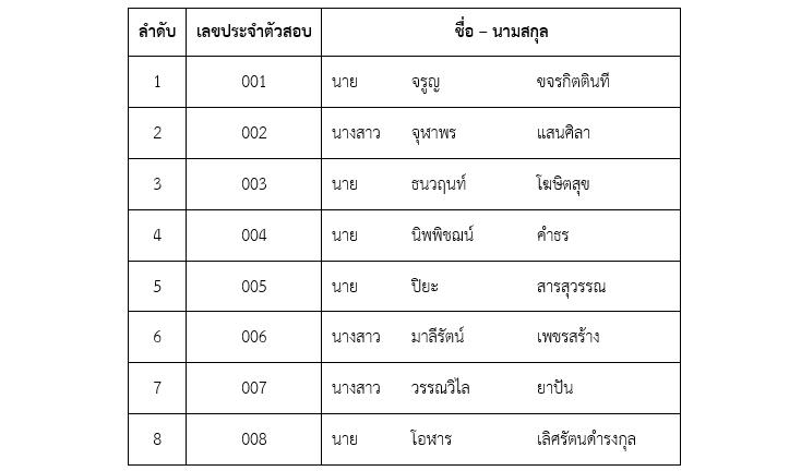 ส.ส.ท. ขอประกาศรายชื่อผู้ผ่านคุณสมบัติเบื้องต้นตามเกณฑ์ที่กำหนด และมีสิทธิเข้ารับการสอบสัมภาษณ์ ดังต่อไปนี้