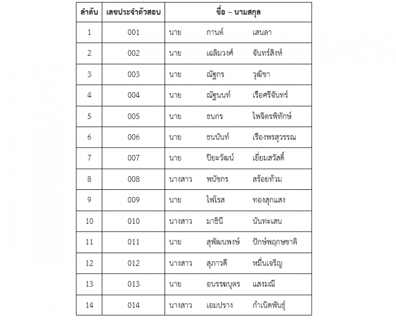 ส.ส.ท. ขอประกาศรายชื่อผู้มีสิทธิเข้ารับการสอบสัมภาษณ์ ดังต่อไปนี้