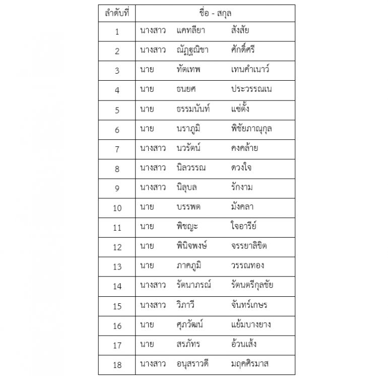 ตามที่ องค์การกระจายเสียงและแพร่ภาพสาธารณะแห่งประเทศไทย (ส.ส.ท.) ได้มีประกาศลงวันที่ 27 พฤศจิกายน พ.ศ. 2568 เรื่อง เปิดรับสมัครผู้ปฏิบัติงานภายใน ประเภทพนักงานประจำ และรับสมัครบุคคลภายนอก เป็นพนักงานประจำ สังกัด สำนักบริหาร นั้น ส.ส.ท. ขอประกาศรายชื่อผู้มีสิทธิสอบข้อเขียน ดังต่อไปนี้