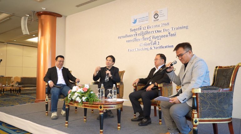 เมื่อวันที่ 12 ธ.ค. 68 ที่ผ่านมา ไทยพีบีเอสเข้าร่วมโครงการอบรม ONE DAY TRAINING แลกเปลี่ยน เรียนรู้กับกูรูออนไลน์ ครั้งที่ 2 ประจำปี 2568 ภายใต้หัวข้อสำคัญอย่าง "Fact Checking & Verification" การอบรมในครั้งนี้เป็นส่วนหนึ่งในโครงการ "ความร่วมมือองค์กรสื่อขับเคลื่อนพัฒนาวิชาชีพ และส่งเสริมจริยธรรมสื่อ" เพื่อสร้างรบบนิเวศสื่อปลอดภัยและสร้างสรรค์พร้อมเสริมทักษะกระบวนการตรวจสอบข่าวปลอม เพื่อให้สื่อมวลชนพร้อมรับมือกับข่าวลวงที่เกิดขึ้นในปัจจุบัน