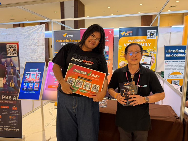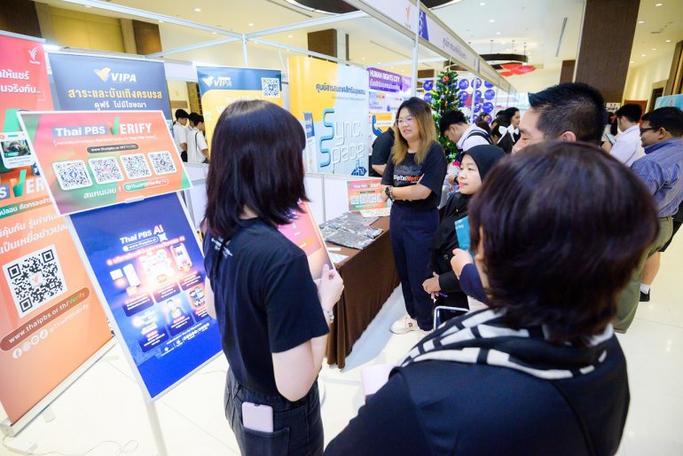 องค์การกระจายเสียงและแพร่ภาพสาธารณะแห่งประเทศไทย (ส.ส.ท.) หรือไทยพีบีเอส ในฐานะสื่อสาธารณะได้นำผลิตภัณฑ์และบริการด้าน AI ภายใต้การดูแลของสำนักสื่อดิจิทัลไปประชาสัมพันธ์ให้กับผู้เข้าร่วมงานในครั้งนี้ ซึ่งไทยพีบีเอส ยังคงให้ความสำคัญต่อการนำเสนอข้อมูลและข่าวสารที่เกิดขึ้นในสังคมสู่ประชาชนอย่างเท่าเทียมทุกกลุ่ม รวมถึงเป็นด่านหน้าในการตรวจสอบเนื้อหาที่ถูกต้อง และเป็นธรรมก่อนเผยแพร่อยู่เสมอ จึงมีการให้บริการ Thai PBS Verify “ตรวจสอบข่าวปลอม คัดกรองข่าวจริง” เพื่อมุ่งเสริมสร้างภูมิคุ้มกันให้กับประชาชน และป้องกันอันตรายจากภัยออนไลน์ทุกรูปแบบ ก่อนตกเป็นเหยื่อข่าวปลอมในปัจจุบัน สามารถใช้บริการแล้ววันนี้