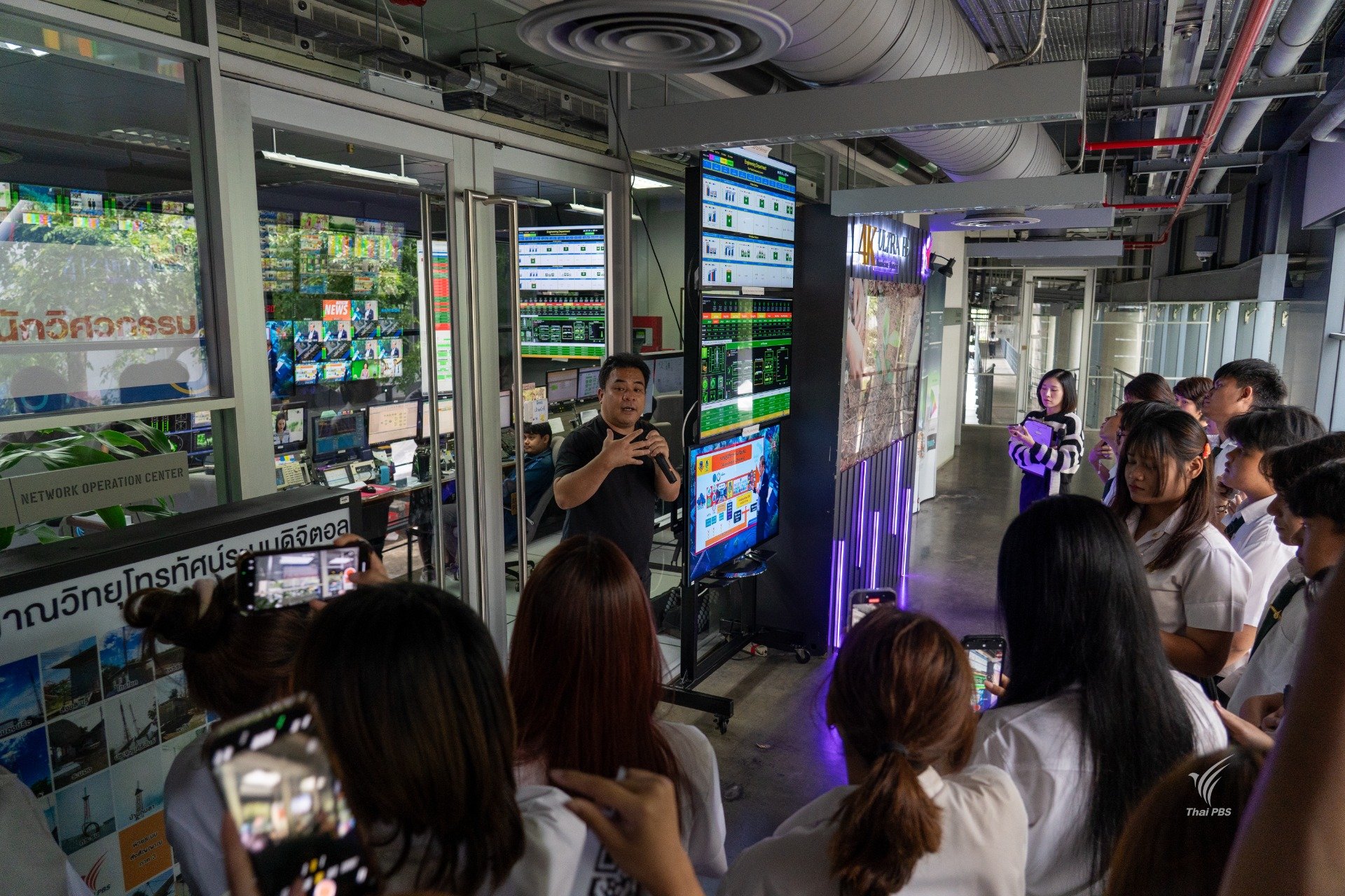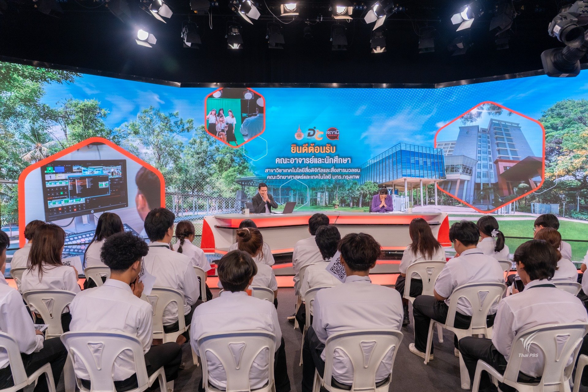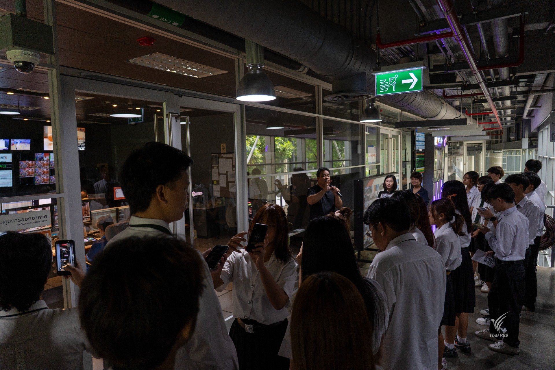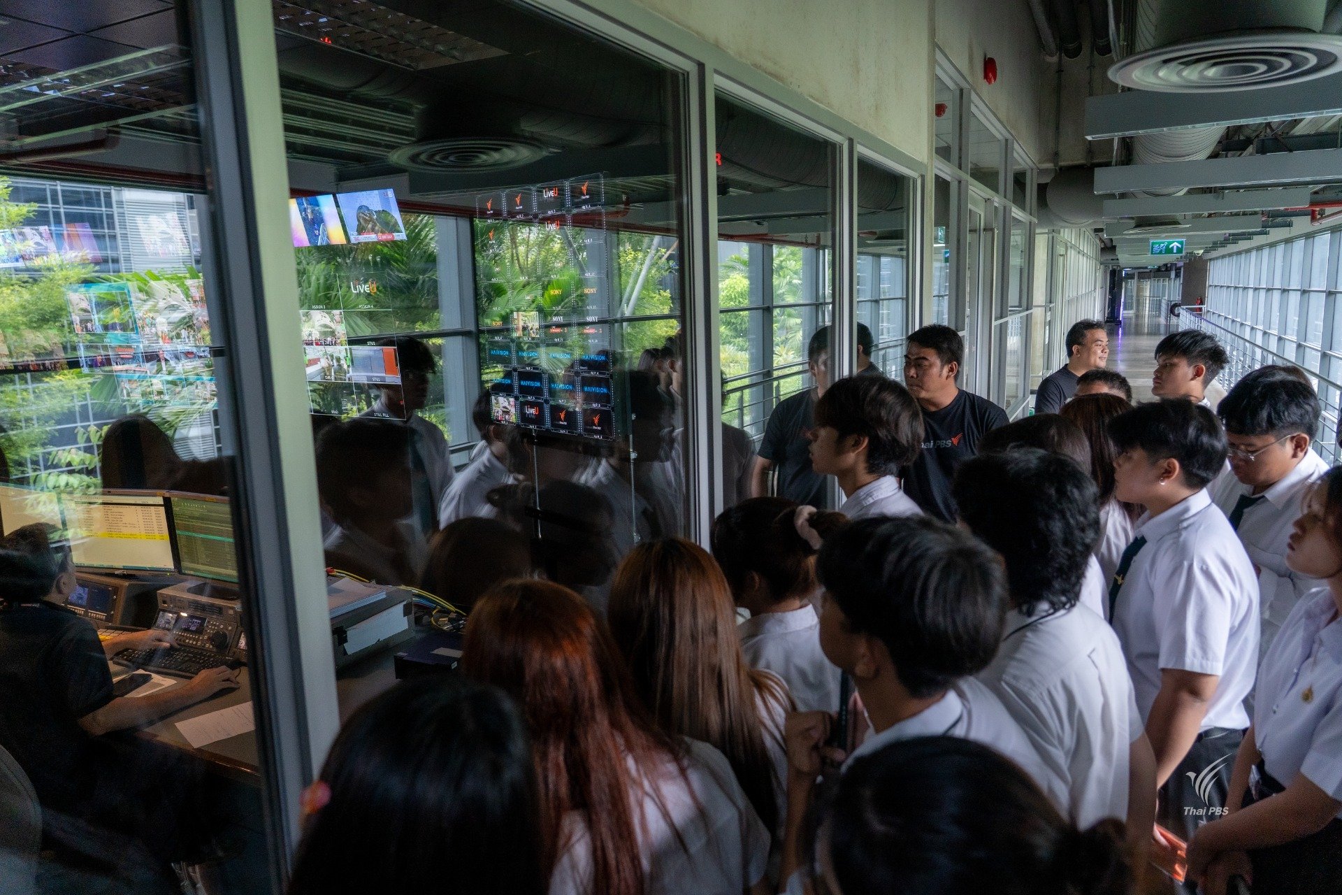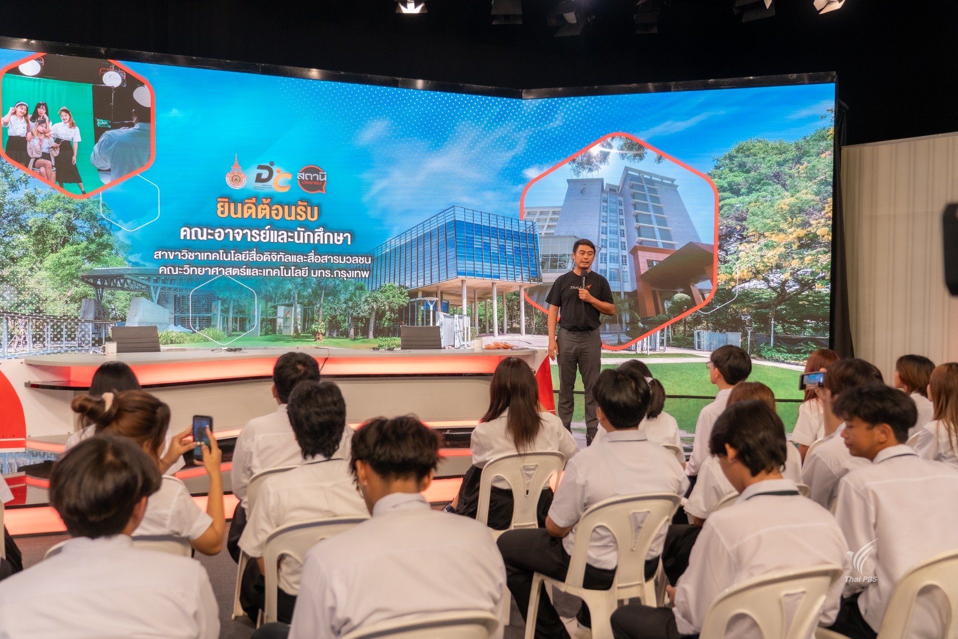 เมื่อวันที่ 24 กันยายน 2568 คณะอาจารย์และนักศึกษา จำนวน 31 คน จากสาขาวิชาเทคโนโลยีสื่อดิจิทัลและสื่อสารมวลชน ภาควิชาเทคโนโลยีสื่อสารและอุตสาหกรรม มหาวิทยาลัยเทคโนโลยีราชมงคลกรุงเทพ ได้เข้าศึกษาดูงานที่ไทยพีบีเอส เริ่มต้นด้วยการเข้าชมการผลิตรายการสถานีประชาชน พร้อมทั้งเยี่ยมชมการทำงานของห้องควบคุมการออกอากาศ (Master Control Room) สตูดิโอข่าว และพื้นที่สำคัญต่าง ๆ ภายในสถานี นอกจากนี้ยังได้รับเกียรติจากคุณประภาส เลิศวิไล ผู้สื่อข่าวจากรายการสถานีประชาชน มาแลกเปลี่ยนประสบการณ์การทำงานจริงในแวดวงสื่อสารมวลชน สร้างแรงบันดาลใจและมุมมองเชิงวิชาชีพให้กับนักศึกษาอย่างลึกซึ้ง กิจกรรมในครั้งนี้ถือเป็นส่วนหนึ่งของการเรียนรู้ภาคสนาม ที่ช่วยเสริมสร้างความเข้าใจในกระบวนการผลิตสื่อ และเตรียมความพร้อมสำหรับการประกอบวิชาชีพในอนาคต