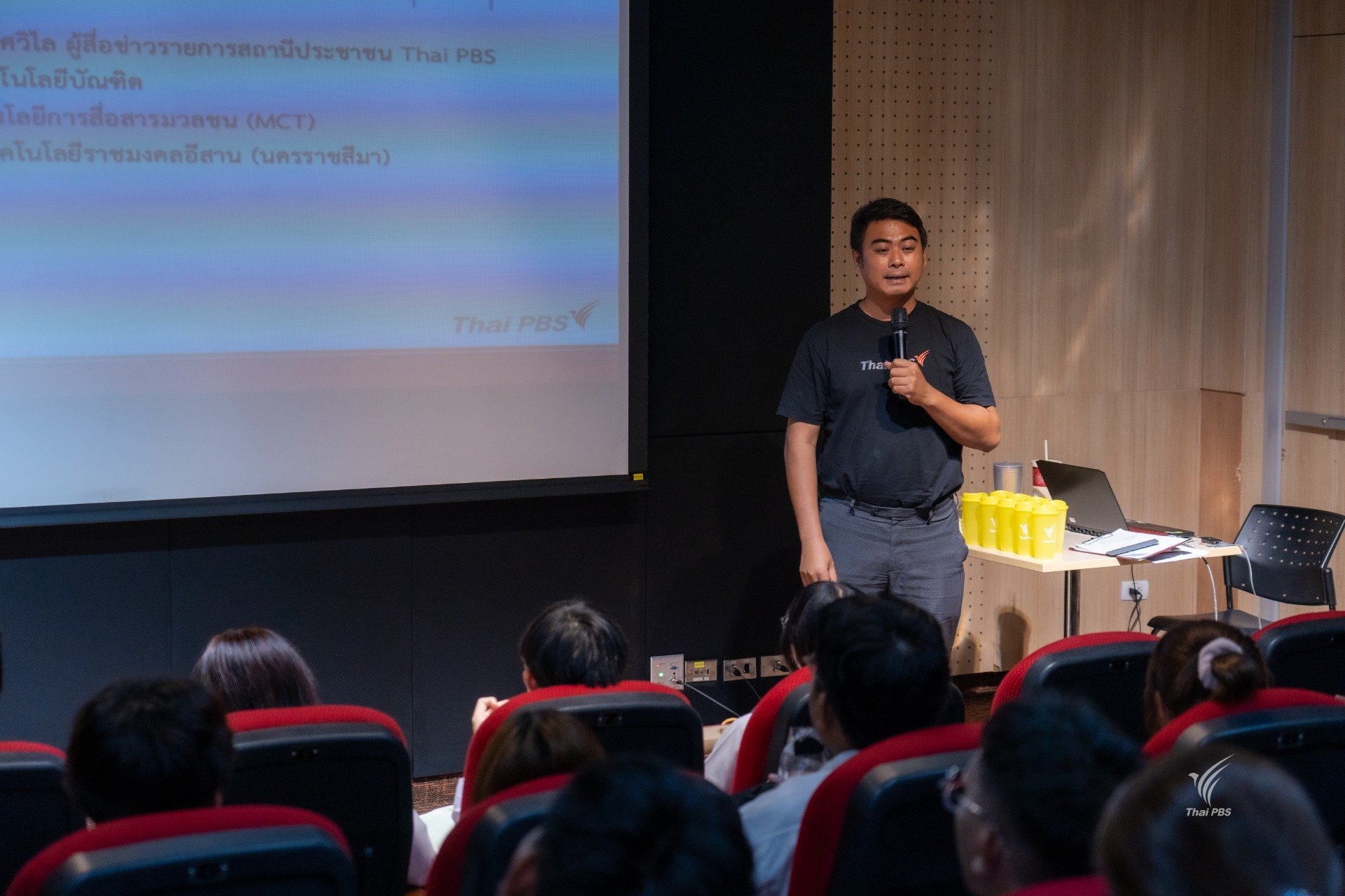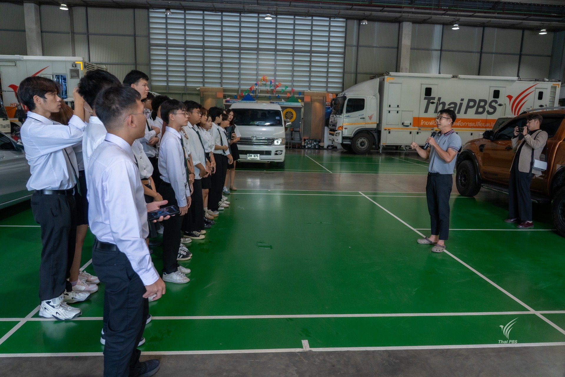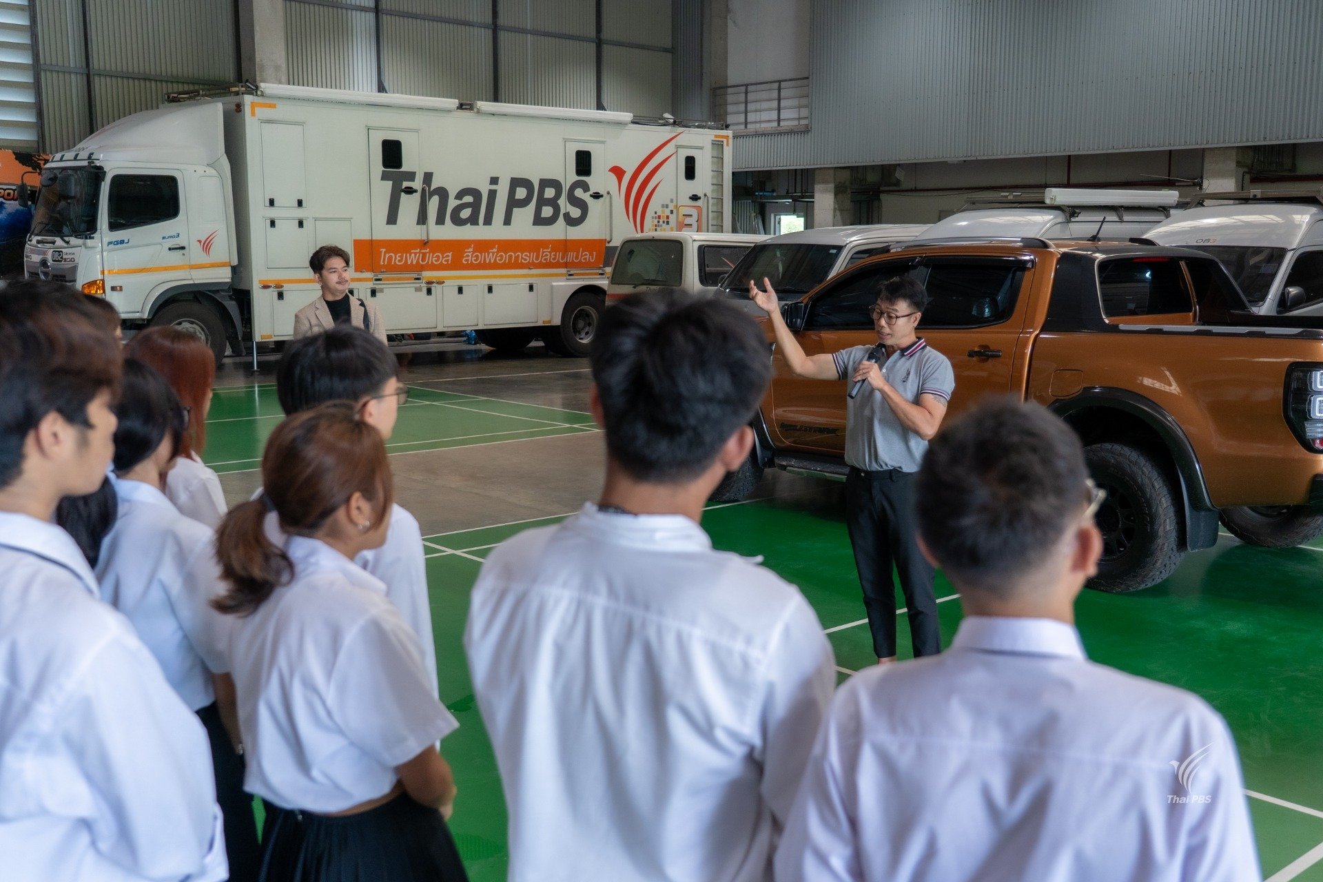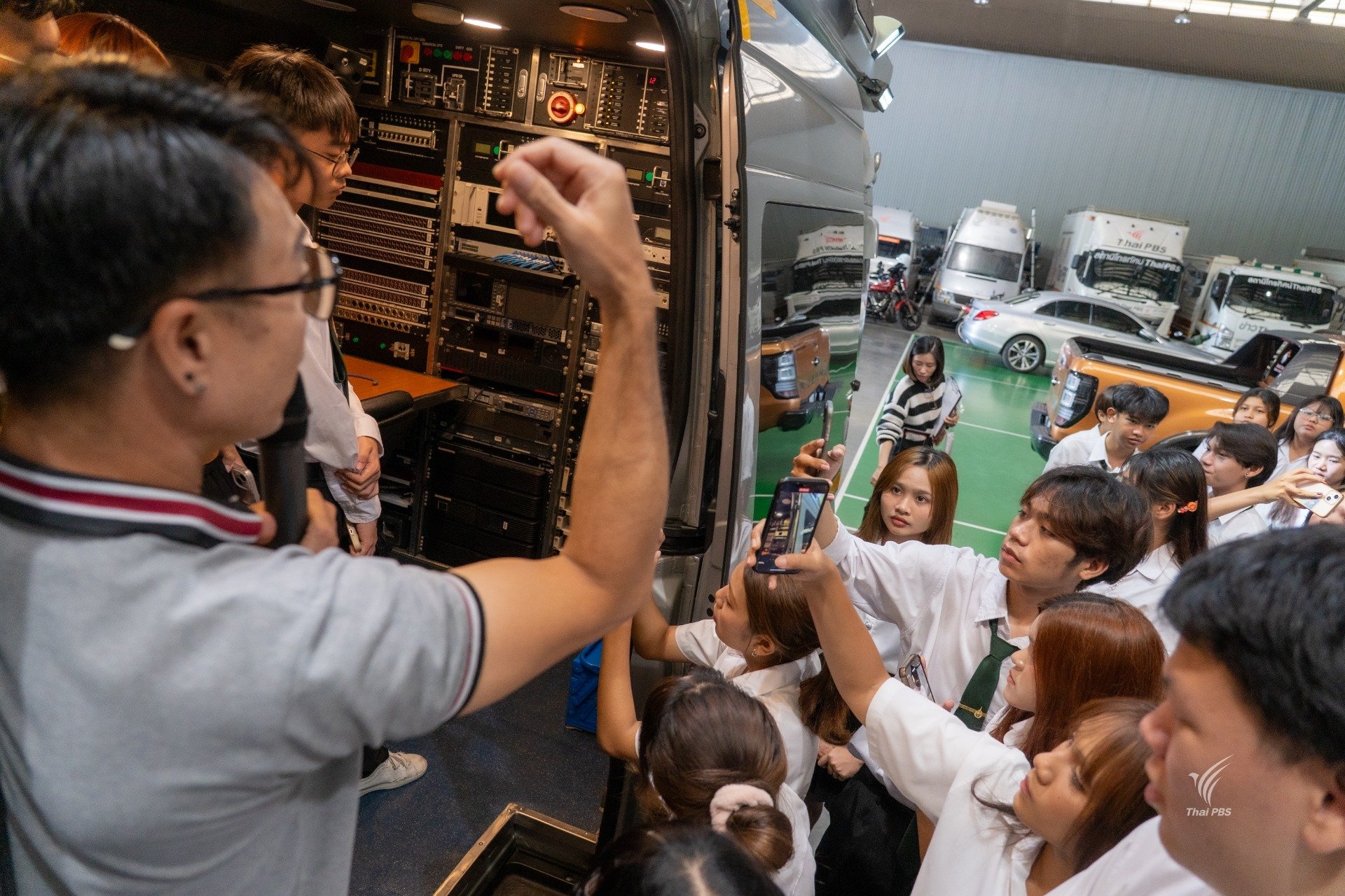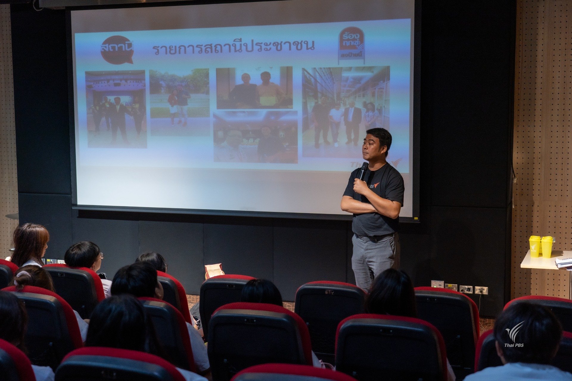 เมื่อวันที่ 24 กันยายน 2568 คณะอาจารย์และนักศึกษา จำนวน 31 คน จากสาขาวิชาเทคโนโลยีสื่อดิจิทัลและสื่อสารมวลชน ภาควิชาเทคโนโลยีสื่อสารและอุตสาหกรรม มหาวิทยาลัยเทคโนโลยีราชมงคลกรุงเทพ ได้เข้าศึกษาดูงานที่ไทยพีบีเอส เริ่มต้นด้วยการเข้าชมการผลิตรายการสถานีประชาชน พร้อมทั้งเยี่ยมชมการทำงานของห้องควบคุมการออกอากาศ (Master Control Room) สตูดิโอข่าว และพื้นที่สำคัญต่าง ๆ ภายในสถานี นอกจากนี้ยังได้รับเกียรติจากคุณประภาส เลิศวิไล ผู้สื่อข่าวจากรายการสถานีประชาชน มาแลกเปลี่ยนประสบการณ์การทำงานจริงในแวดวงสื่อสารมวลชน สร้างแรงบันดาลใจและมุมมองเชิงวิชาชีพให้กับนักศึกษาอย่างลึกซึ้ง กิจกรรมในครั้งนี้ถือเป็นส่วนหนึ่งของการเรียนรู้ภาคสนาม ที่ช่วยเสริมสร้างความเข้าใจในกระบวนการผลิตสื่อ และเตรียมความพร้อมสำหรับการประกอบวิชาชีพในอนาคต