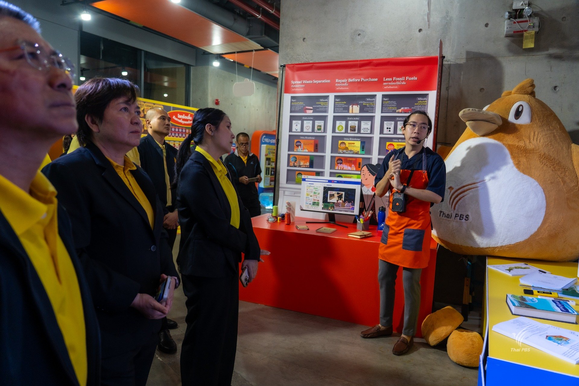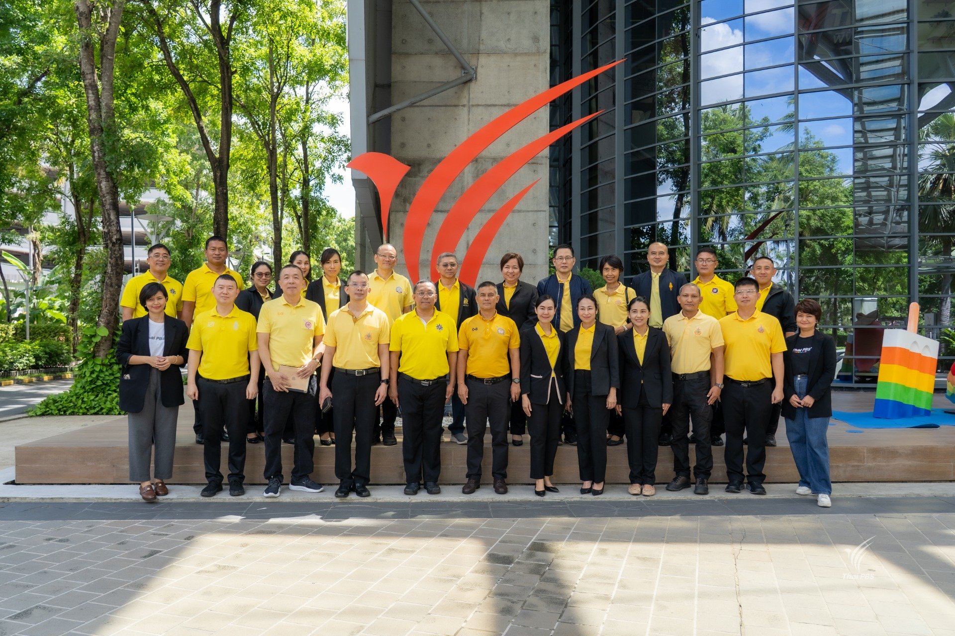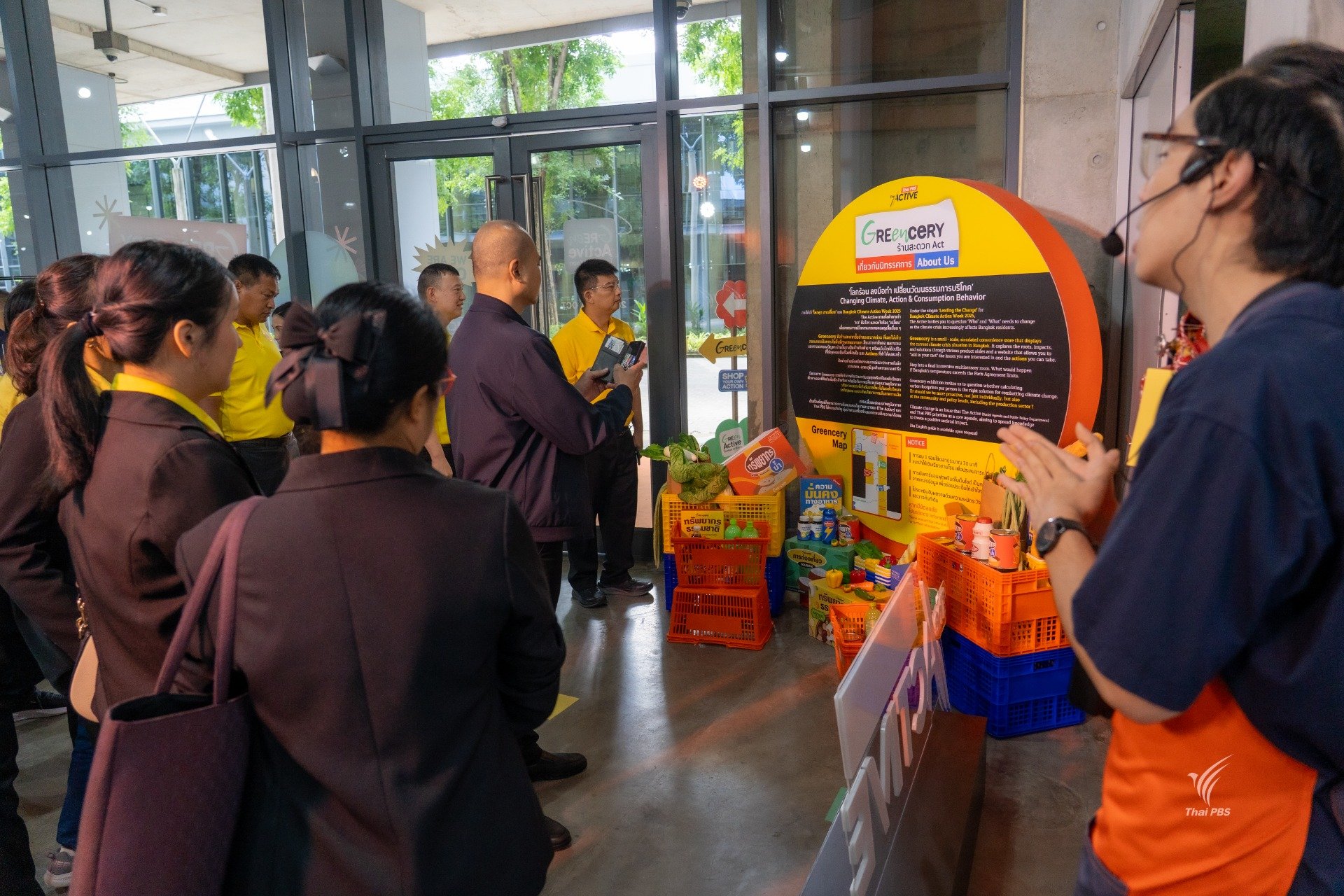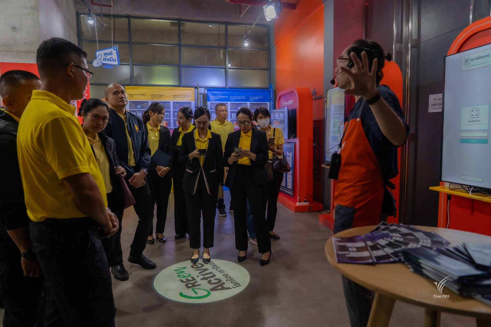 เมื่อวันที่ 30 กันยายน 2568 คณะกลุ่มงานอาจารย์จากกองบัญชาการศึกษา สำนักงานตำรวจแห่งชาติ จำนวน 25 คน ได้เดินทางมาศึกษาดูงาน ที่ไทยพีบีเอส โดยได้เยี่ยมชมกระบวนการทำงานเบื้องหลังรายการ “วันใหม่วาไรตี้” พร้อมพูดคุยแลกเปลี่ยนกับทีมพิธีกร ได้แก่ คุณอธิวัฒน์ ธีรนิธิศนันท์, คุณชไมพร เห็นประเสริฐ และคุณพิชญาพร โพธิ์สง่า นอกจากนี้ คณะฯ ยังได้เยี่ยมชมห้องควบคุมการออกอากาศ สตูดิโอข่าว และบริเวณโดยรอบของสถานี เพื่อเรียนรู้การทำงานขององค์กรสื่อสาธารณะอย่างใกล้ชิด ช่วงบ่ายได้รับเกียรติจากทีมงาน The Active นำร่วมกิจกรรม “Green Active โลกร้อง เรารีแอก” ภายใต้ธีม Climate Action หรือการลงมือทำเพื่อรับมือกับวิกฤตภูมิอากาศ โดยได้เข้าชมนิทรรศการ “Greencery ร้านสะดวก Act” ซึ่งนำเสนอแนวทางการมีส่วนร่วมของแต่ละคนต่อปัญหาโลกร้อน ผ่านการจัดแสดงที่ทันสมัยในรูปแบบ Interactive และ Immersive Experience กิจกรรมนี้มีเป้าหมายเพื่อสร้างความเข้าใจและจุดประกายการมีส่วนร่วมของประชาชนต่อการเปลี่ยนแปลงสภาพภูมิอากาศ โดยเริ่มต้นจากการลงมือทำเล็ก ๆ ที่สามารถสร้างผลกระทบเชิงบวกในระยะยาว