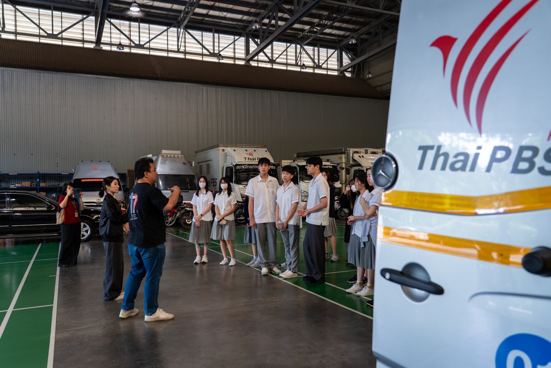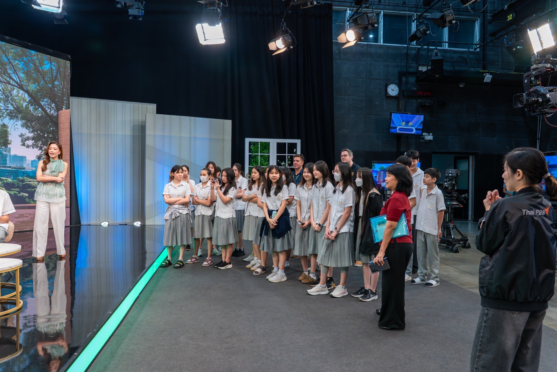 เมื่อวันที่ 1 ตุลาคม 2568 คณะครูและนักเรียนจากโรงเรียนนานาชาติรุ่งอรุณ จำนวน 30 คน ศึกษาดูงานที่ไทยพีบีเอส เพื่อเรียนรู้กระบวนการตรวจสอบข้อเท็จจริงผ่าน Thai PBS Verify โดยมี คุณธิดารัตน์ ลาภอนันต์ตระกูล หัวหน้างานกลยุทธ์โครงการ และคุณณัฐพล ทุมมา เจ้าหน้าที่เนื้อหาสื่อดิจิทัลอาวุโส จากสำนักสื่อดิจิทัล ให้การต้อนรับและบรรยายให้ความรู้ ผู้เข้าร่วมยังได้เยี่ยมชมเบื้องหลังการผลิตรายการวันใหม่วาไรตี้ รวมถึงห้องควบคุมการออกอากาศ สตูดิโอข่าว และพื้นที่โดยรอบของไทยพีบีเอส เพื่อเรียนรู้การทำงานของสื่อสาธารณะอย่างใกล้ชิด นอกจากนี้ คณะฯ ยังได้เข้าชมนิทรรศการ “Green Active โลกร้อง เรารีแอก” ที่จัดแสดงเพื่อส่งเสริมการมีส่วนร่วมด้านสิ่งแวดล้อมและความตระหนักรู้ต่อการเปลี่ยนแปลงของโลก