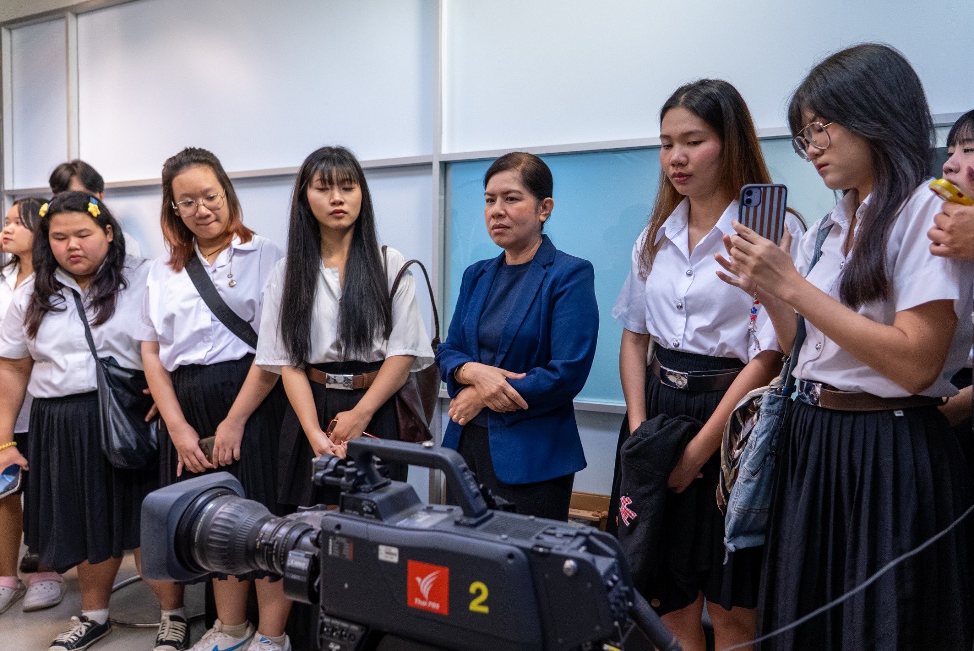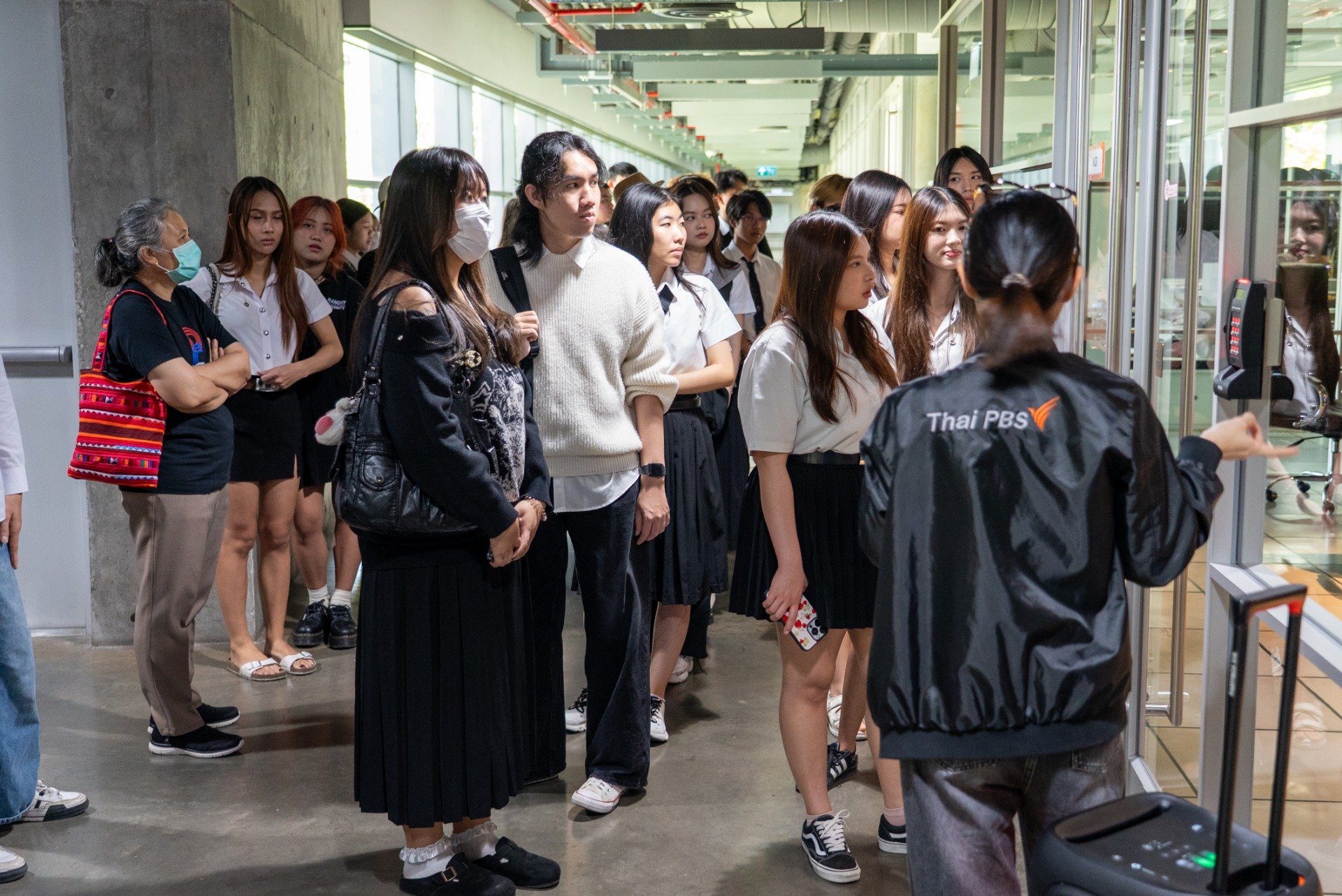 เมื่อวันที่ 6 ตุลาคม 2568 คณะอาจารย์และนักศึกษาจำนวน 68 คน จากสาขาวิชาการสร้างสรรค์คอนเทนต์ดิจิทัล วิทยาลัยนิเทศศาสตร์ มหาวิทยาลัยรังสิต เยี่ยมชมและแลกเปลี่ยนเรียนรู้ที่ไทยพีบีเอส เพื่อเสริมสร้างความรู้และประสบการณ์ตรงด้านการผลิตสื่อ คณะฯ ได้เยี่ยมชมรายการวันใหม่วาไรตี้ ห้องควบคุมการออกอากาศ สตูดิโอข่าว และสถานที่โดยรอบของสถานี โดยมีเจ้าหน้าที่ให้การต้อนรับและแนะนำกระบวนการทำงานอย่างใกล้ชิด นอกจากนี้ ยังได้รับเกียรติจาก คุณกนกพร ประสิทธิ์ผล ผู้อำนวยการสำนักสื่อดิจิทัล มาร่วมแลกเปลี่ยนความรู้ในหัวข้อ “การสร้างสรรค์คอนเทนต์ดิจิทัลของไทยพีบีเอส” ซึ่งสร้างแรงบันดาลใจและเปิดมุมมองใหม่ให้แก่นักศึกษาเป็นอย่างยิ่ง