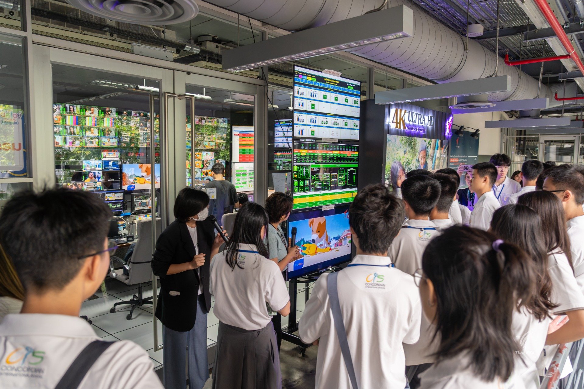 เมื่อวันที่ 9 ต.ค. 2568 อาจารย์และนักเรียนระดับชั้นมัธยมศึกษาปีที่ 4 (เกรด 10) จากโรงเรียนนานาชาติคอนคอร์เดียน จ.สมุทรปราการ จำนวน 68 คน เข้าศึกษาดูงานที่ไทยพีบีเอส แหล่งเรียนรู้นอกสถานที่ เยี่ยมชมรายการ “วันใหม่วาไรตี้” เรียนรู้กระบวนการออกอากาศรายการสด ทั้งเบื้องหน้าและเบื้องหลัง สัมผัสพูดคุยกับพิธีกร ผู้ดำเนินรายการมืออาชีพ กับพี่ต็อบ- อธิวัฒน์ ธีรนิธิศนันท์, พี่ยุ้ย-ชไมพร เห็นประเสริฐ และพี่พรีน - พิชญาพร โพธิ์สง่า นอกจากนี้ยังได้เยี่ยมชมห้องควบคุมการออกอากาศ (MCR) ห้อง Network Operation Center (NOC) หรือศูนย์ปฏิบัติการเครือข่าย จากนั้นแลกเปลี่ยนพูดคุยกับ พี่เดียร์-วริศรา แซ่ห่าน Content creator / ผู้สื่อข่าว จาก Thai PBS World ร่วมแชร์ประสบการณ์การทำงานสื่อสารมวลชน และการเป็น Mobile Journalism (MOJO) รูปแบบการทำคอนเทนต์ยุคใหม่ พร้อมกิจกรรมเวิร์คชอปให้ได้ทดลองรายงานข่าวสร้างรอยยิ้ม ความประทับใจ และแรงบันดาลใจให้กับน้อง ๆ เป็นอย่างมาก