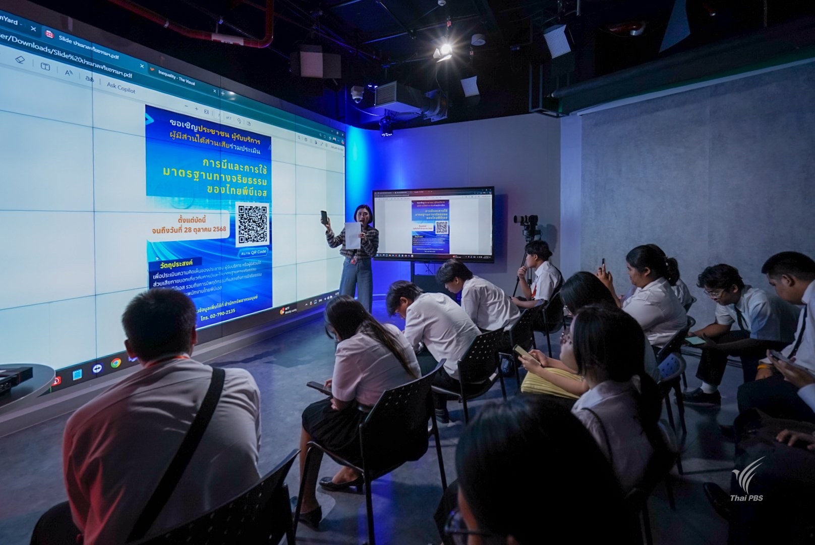 เมื่อวันที่ 22 ตุลาคม คณะอาจารย์และนักศึกษาจากสาขาดิจิทัลกราฟิก วิทยาลัยเทคโนโลยีพงษ์สวัสดิ์ จำนวน 33 คน ได้เดินทางเข้าศึกษาดูงานที่ไทยพีบีเอส เยี่ยมชมกระบวนการผลิตรายการวันใหม่วาไรตี้ ห้องควบคุมการออกอากาศ สตูดิโอข่าว และสถานที่โดยรอบของไทยพีบีเอส และได้ถือโอกาสเยี่ยมสำนักสื่อดิจิทัล ไทยพีบีเอส แลกเปลี่ยนเรียนรู้ เรื่อง “การออกอากาศในระบบดิจิทัลบรอดแคสต์” และ การบริหารจัดการแพลตฟอร์มออนไลน์ไทยพีบีเอส" รวมถึงได้เข้าใจประมวลจริยธรรม ส.ส.ท. ซึ่งไทยพีบีเอส ขอความร่วมมือให้ผู้มีส่วนได้ส่วนเสีย ได้ประเมินองค์กร ในด้านจริยธรรมอีกด้วย