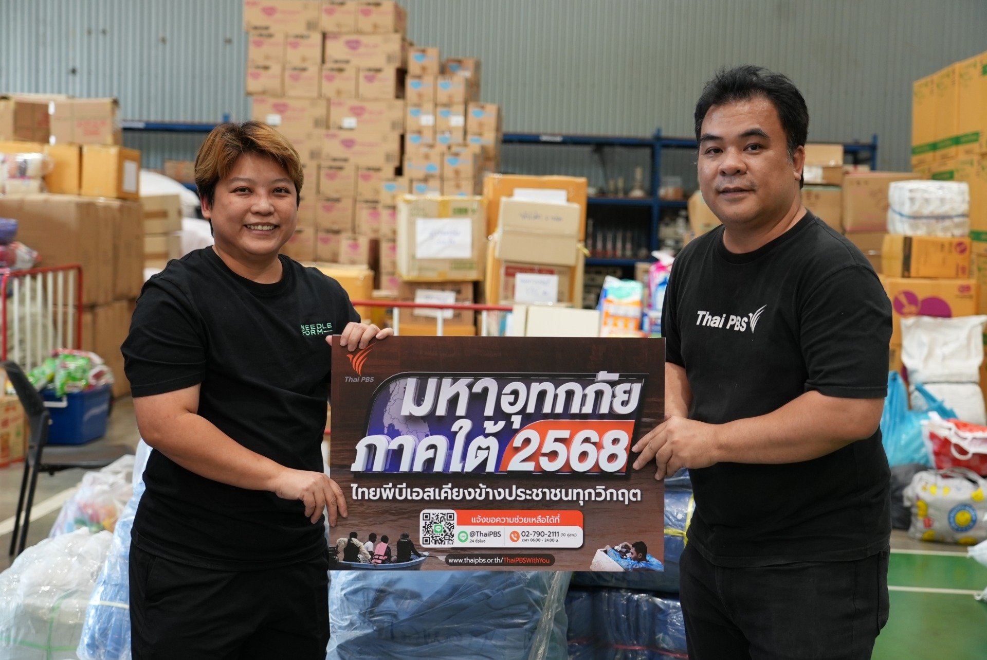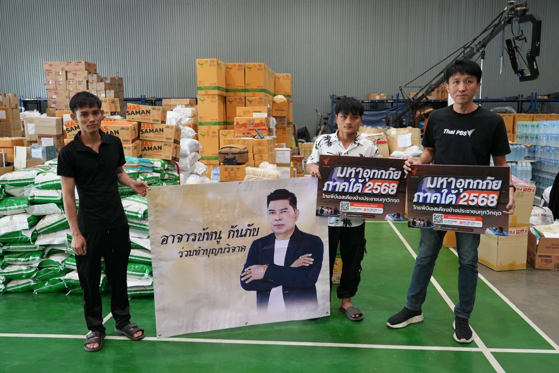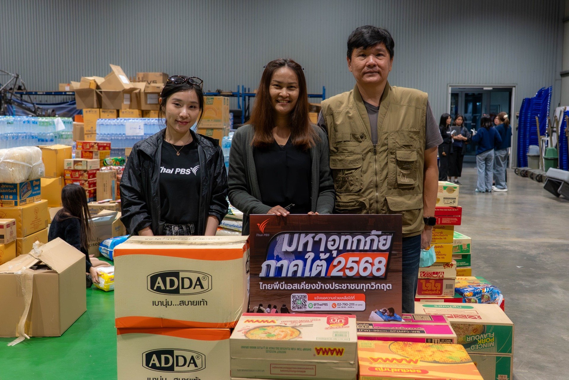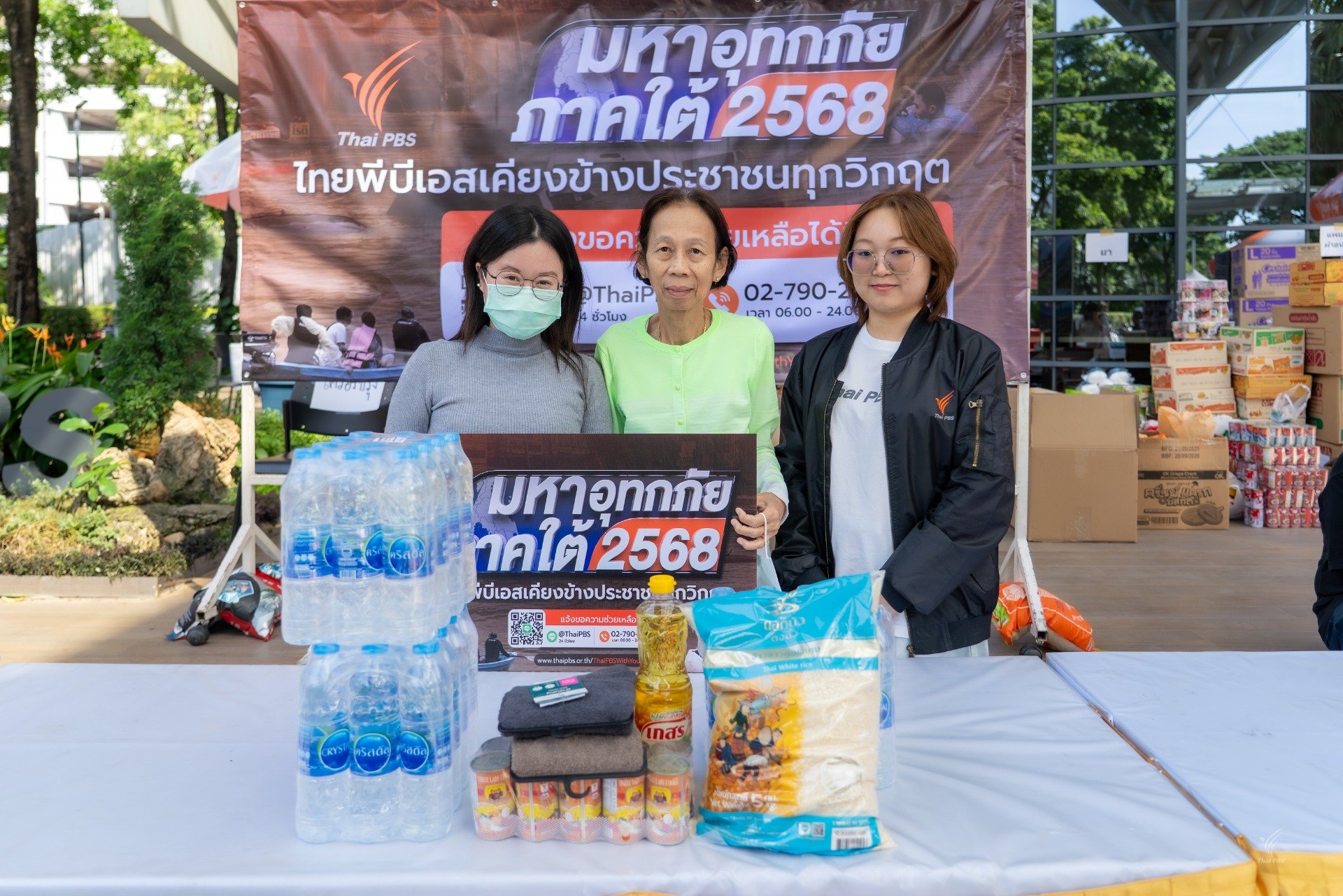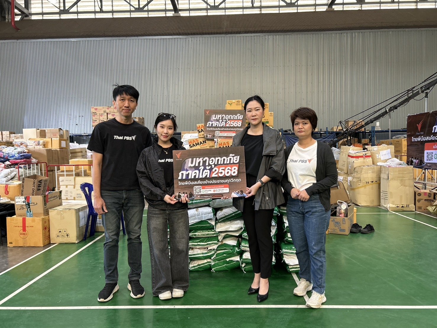 ประมาลภาพบรรยกาศ ภารกิจระดมกำลังช่วยน้ำท่วมหาดใหญ่ ของ "ศูนย์ประสานความช่วยเหลือมหาอุทกภัยภาคใต้ 2568" วันที่ 28 พ.ย. ไทยพีบีเอส ร่วมกับทีม “ต้องรอด Up For Thai” ในการ โดยเร่งลำเลียงเสบียงและอุปกรณ์จำเป็นจากกรุงเทพฯ สู่จังหวัดสงขลา ผ่านการสนับสนุนของ สายการบินแอร์เอเชีย และรถบรรทุก 10 ล้อ จากมูลนิธิพุทธภูมิธรรม ถือว่าได้รับการช่วยเหลือขนส่งทั้งทางบกและทางอากาศ ขณะที่มีผู้ให้ความสนใจนำสิ่งของมาร่วมบริจาคจำนวนมาก อาทิ มูลนิธิปันสุข และ Shavich Holding มหาวิทยาลัยเกษตรศาสตร์ กรมส่งเสริมการเกษตร บริษัทฮีโน่มอเตอร์เซลส์ประเทศไทย ข้าววรรณภพ บริษัทไบโอฟาร์มเคมีคอล จำกัด โรงเรียนวรรัตน์ศึกษา โรงเรียนดิลกศึกษา สวทช. บริษัทรักษาความปลอดภัย guard force cash solution ประเทศไทย จำกัด รวมถึงภาคประชาชนที่ยังคงทยอยนำสิ่งของมาร่วมบริจาคให้อย่างไม่ขาดสาย เพื่อส่งไปยัง สำนักงาน กสทช. เขต 4 อ.หาดใหญ่ ที่ให้การสนับสนุนสถานที่จัดเก็บและจัดทำถุงยังชีพ โดยมีเจ้าหน้าที่จิตอาสาไทยพีบีเอส ทำหน้าที่ลำเลียงและคัดแยกสิ่งของที่ได้รับบริจาค อาทิ ข้าวสาร อาหารกระป๋อง อาหารแห้ง น้ำดื่ม ยารักษาโรค ผ้าอนามัย นม ผ้าอ้อม เสื้อผ้า อาหารสัตว์เลี้ยง และของจำเป็นอื่น ๆ ขนขึ้นรถเพื่อนำไปสู่พื้นที่ประสบอุทกภัย