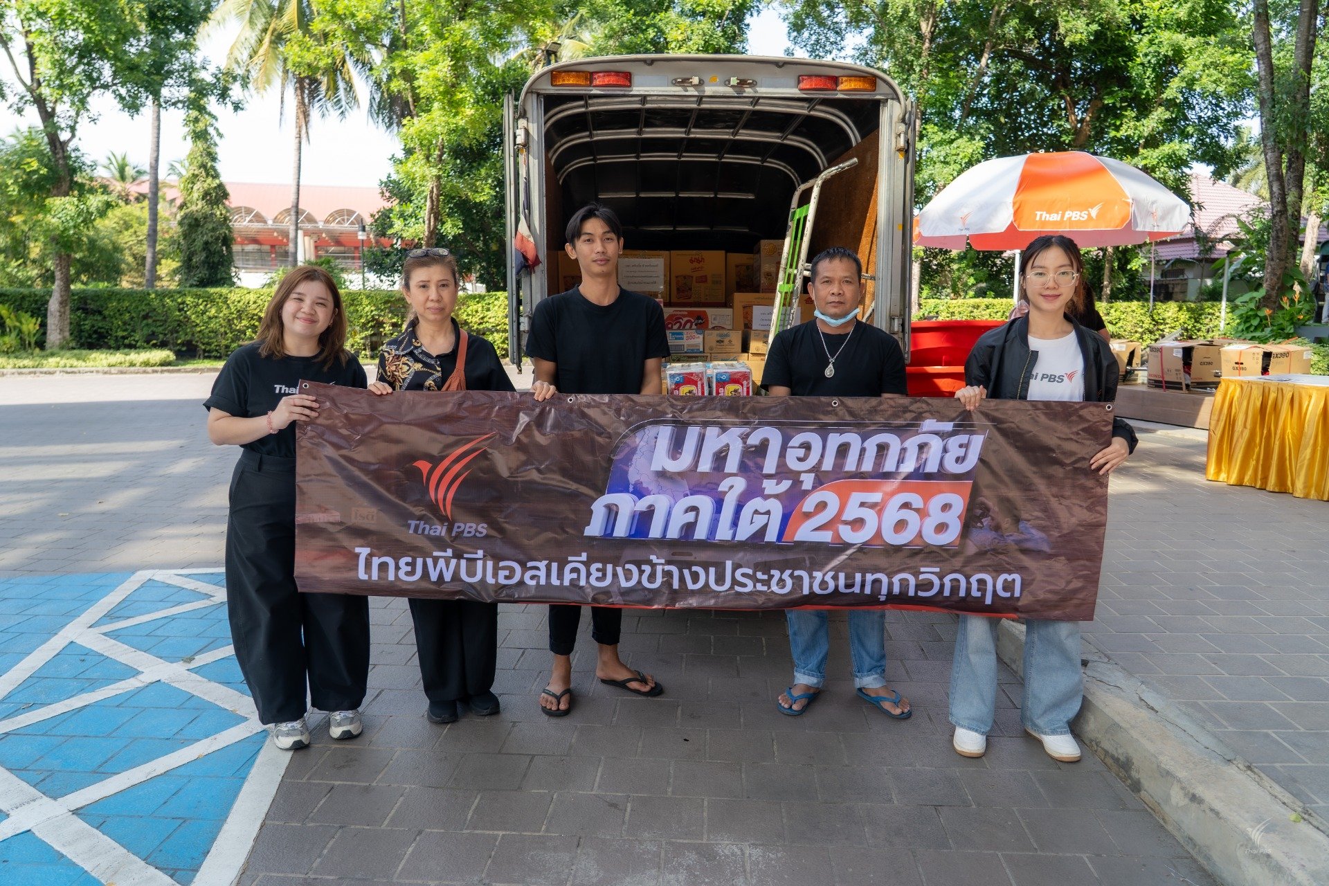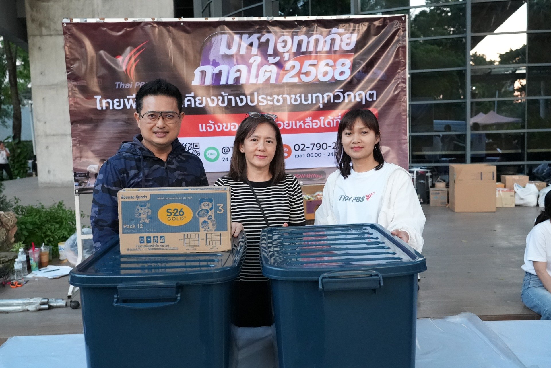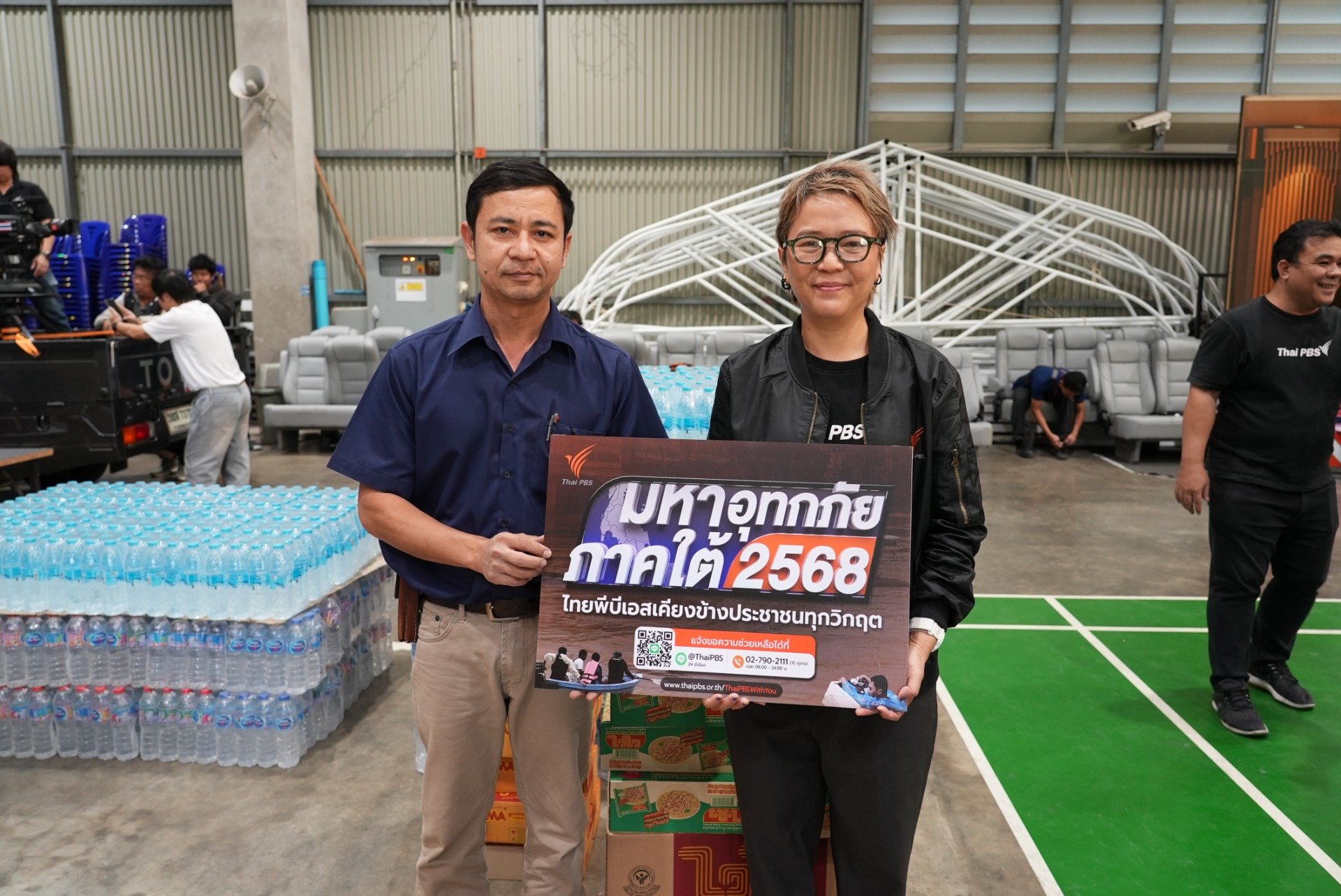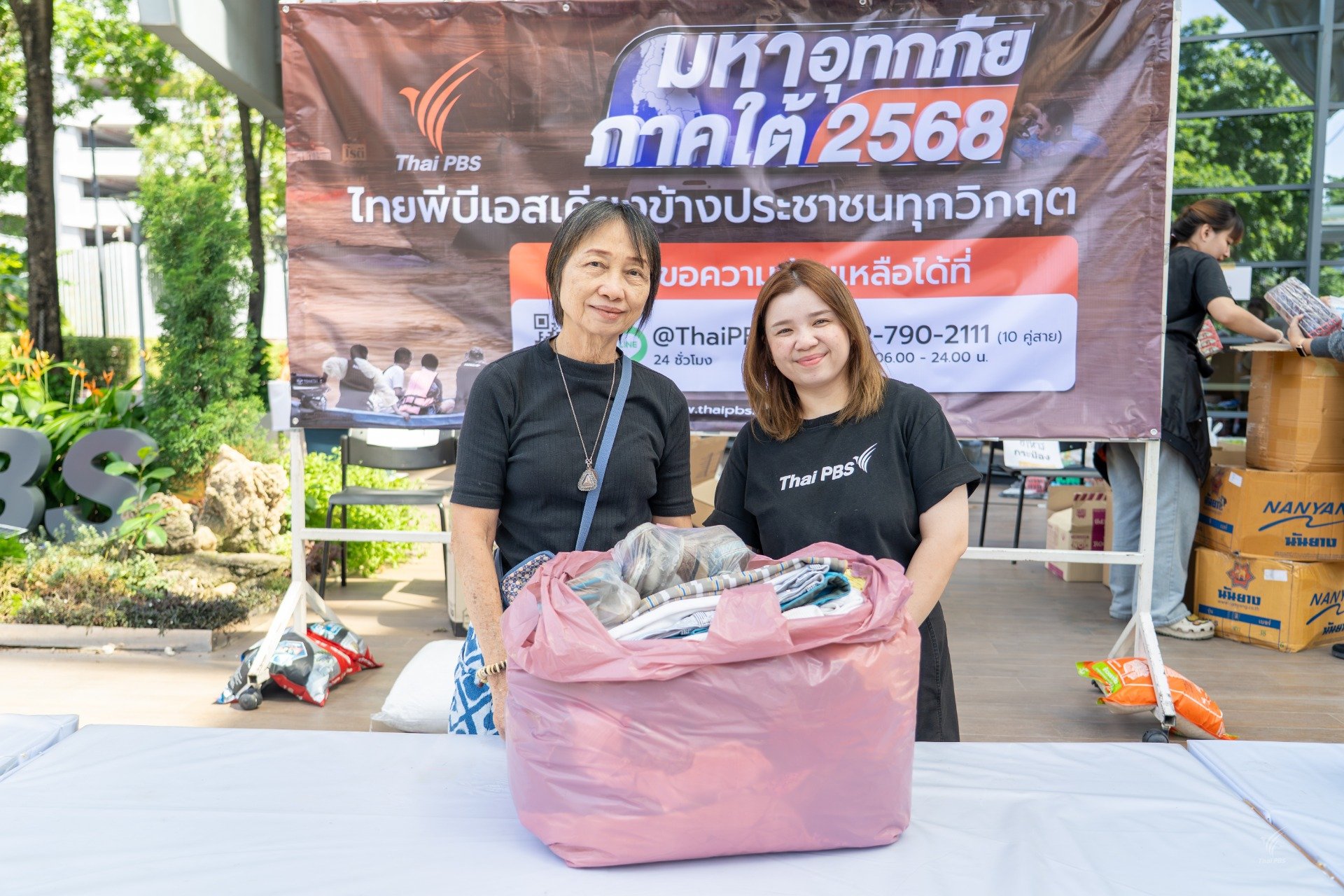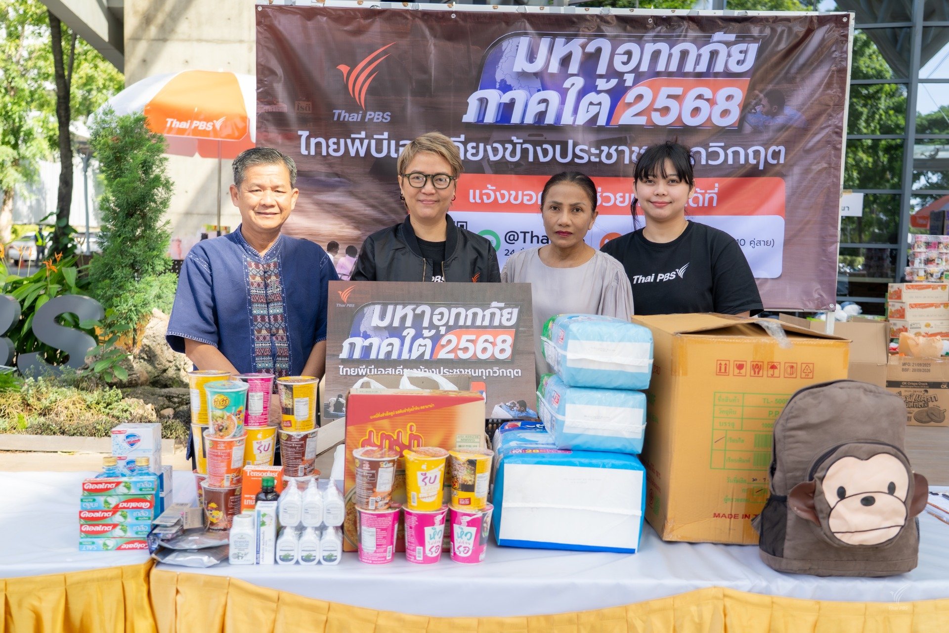 ประมาลภาพบรรยกาศ ภารกิจระดมกำลังช่วยน้ำท่วมหาดใหญ่ ของ "ศูนย์ประสานความช่วยเหลือมหาอุทกภัยภาคใต้ 2568" วันที่ 28 พ.ย. ไทยพีบีเอส ร่วมกับทีม “ต้องรอด Up For Thai” ในการ โดยเร่งลำเลียงเสบียงและอุปกรณ์จำเป็นจากกรุงเทพฯ สู่จังหวัดสงขลา ผ่านการสนับสนุนของ สายการบินแอร์เอเชีย และรถบรรทุก 10 ล้อ จากมูลนิธิพุทธภูมิธรรม ถือว่าได้รับการช่วยเหลือขนส่งทั้งทางบกและทางอากาศ ขณะที่มีผู้ให้ความสนใจนำสิ่งของมาร่วมบริจาคจำนวนมาก อาทิ มูลนิธิปันสุข และ Shavich Holding มหาวิทยาลัยเกษตรศาสตร์ กรมส่งเสริมการเกษตร บริษัทฮีโน่มอเตอร์เซลส์ประเทศไทย ข้าววรรณภพ บริษัทไบโอฟาร์มเคมีคอล จำกัด โรงเรียนวรรัตน์ศึกษา โรงเรียนดิลกศึกษา สวทช. บริษัทรักษาความปลอดภัย guard force cash solution ประเทศไทย จำกัด รวมถึงภาคประชาชนที่ยังคงทยอยนำสิ่งของมาร่วมบริจาคให้อย่างไม่ขาดสาย เพื่อส่งไปยัง สำนักงาน กสทช. เขต 4 อ.หาดใหญ่ ที่ให้การสนับสนุนสถานที่จัดเก็บและจัดทำถุงยังชีพ โดยมีเจ้าหน้าที่จิตอาสาไทยพีบีเอส ทำหน้าที่ลำเลียงและคัดแยกสิ่งของที่ได้รับบริจาค อาทิ ข้าวสาร อาหารกระป๋อง อาหารแห้ง น้ำดื่ม ยารักษาโรค ผ้าอนามัย นม ผ้าอ้อม เสื้อผ้า อาหารสัตว์เลี้ยง และของจำเป็นอื่น ๆ ขนขึ้นรถเพื่อนำไปสู่พื้นที่ประสบอุทกภัย