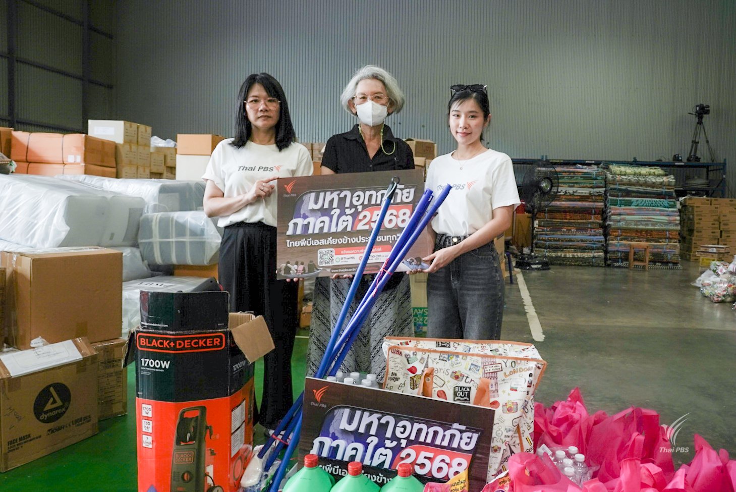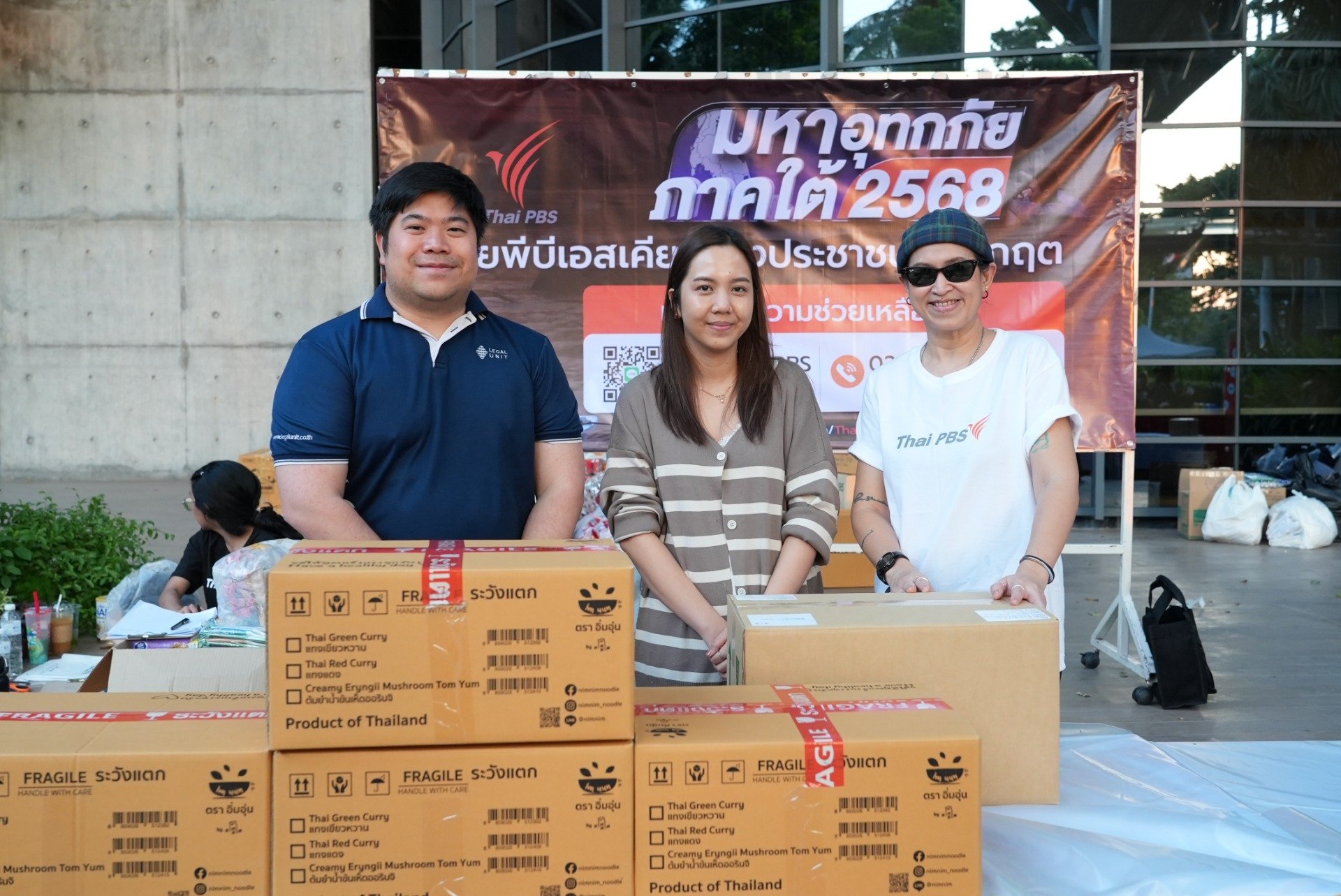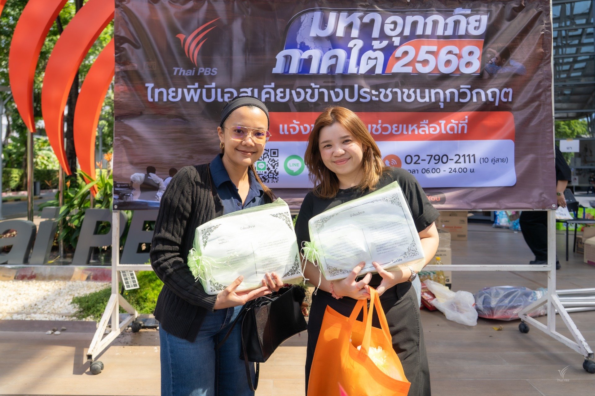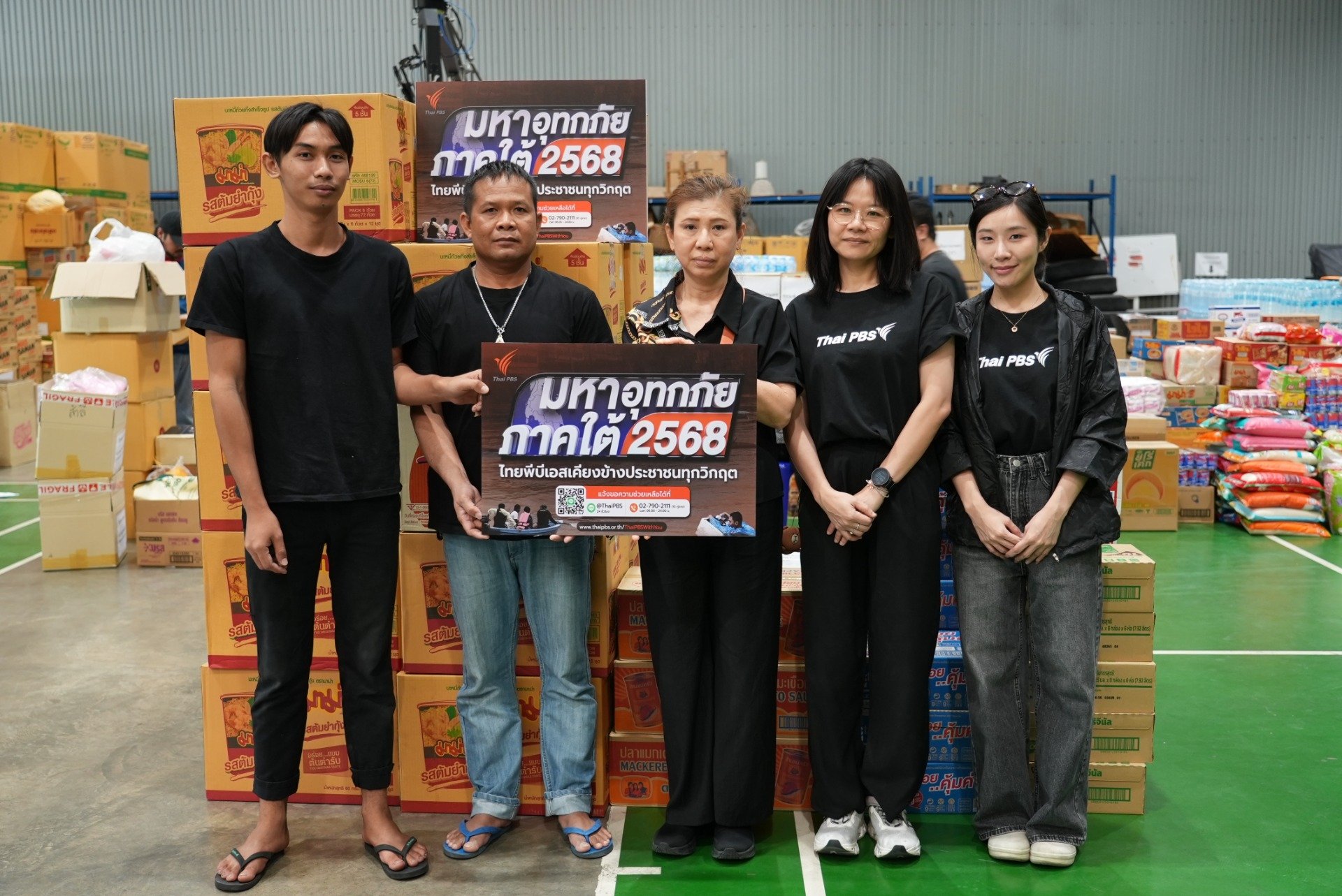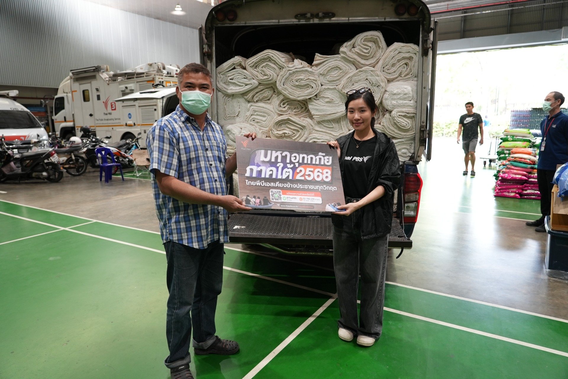 ประมาลภาพบรรยกาศ ภารกิจระดมกำลังช่วยน้ำท่วมหาดใหญ่ ของ "ศูนย์ประสานความช่วยเหลือมหาอุทกภัยภาคใต้ 2568" วันที่ 28 พ.ย. ไทยพีบีเอส ร่วมกับทีม “ต้องรอด Up For Thai” ในการ โดยเร่งลำเลียงเสบียงและอุปกรณ์จำเป็นจากกรุงเทพฯ สู่จังหวัดสงขลา ผ่านการสนับสนุนของ สายการบินแอร์เอเชีย และรถบรรทุก 10 ล้อ จากมูลนิธิพุทธภูมิธรรม ถือว่าได้รับการช่วยเหลือขนส่งทั้งทางบกและทางอากาศ ขณะที่มีผู้ให้ความสนใจนำสิ่งของมาร่วมบริจาคจำนวนมาก อาทิ มูลนิธิปันสุข และ Shavich Holding มหาวิทยาลัยเกษตรศาสตร์ กรมส่งเสริมการเกษตร บริษัทฮีโน่มอเตอร์เซลส์ประเทศไทย ข้าววรรณภพ บริษัทไบโอฟาร์มเคมีคอล จำกัด โรงเรียนวรรัตน์ศึกษา โรงเรียนดิลกศึกษา สวทช. บริษัทรักษาความปลอดภัย guard force cash solution ประเทศไทย จำกัด รวมถึงภาคประชาชนที่ยังคงทยอยนำสิ่งของมาร่วมบริจาคให้อย่างไม่ขาดสาย เพื่อส่งไปยัง สำนักงาน กสทช. เขต 4 อ.หาดใหญ่ ที่ให้การสนับสนุนสถานที่จัดเก็บและจัดทำถุงยังชีพ โดยมีเจ้าหน้าที่จิตอาสาไทยพีบีเอส ทำหน้าที่ลำเลียงและคัดแยกสิ่งของที่ได้รับบริจาค อาทิ ข้าวสาร อาหารกระป๋อง อาหารแห้ง น้ำดื่ม ยารักษาโรค ผ้าอนามัย นม ผ้าอ้อม เสื้อผ้า อาหารสัตว์เลี้ยง และของจำเป็นอื่น ๆ ขนขึ้นรถเพื่อนำไปสู่พื้นที่ประสบอุทกภัย