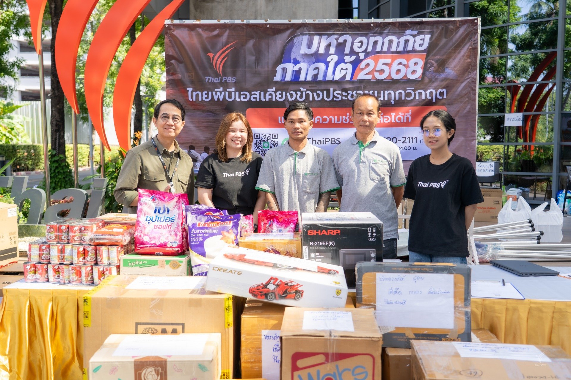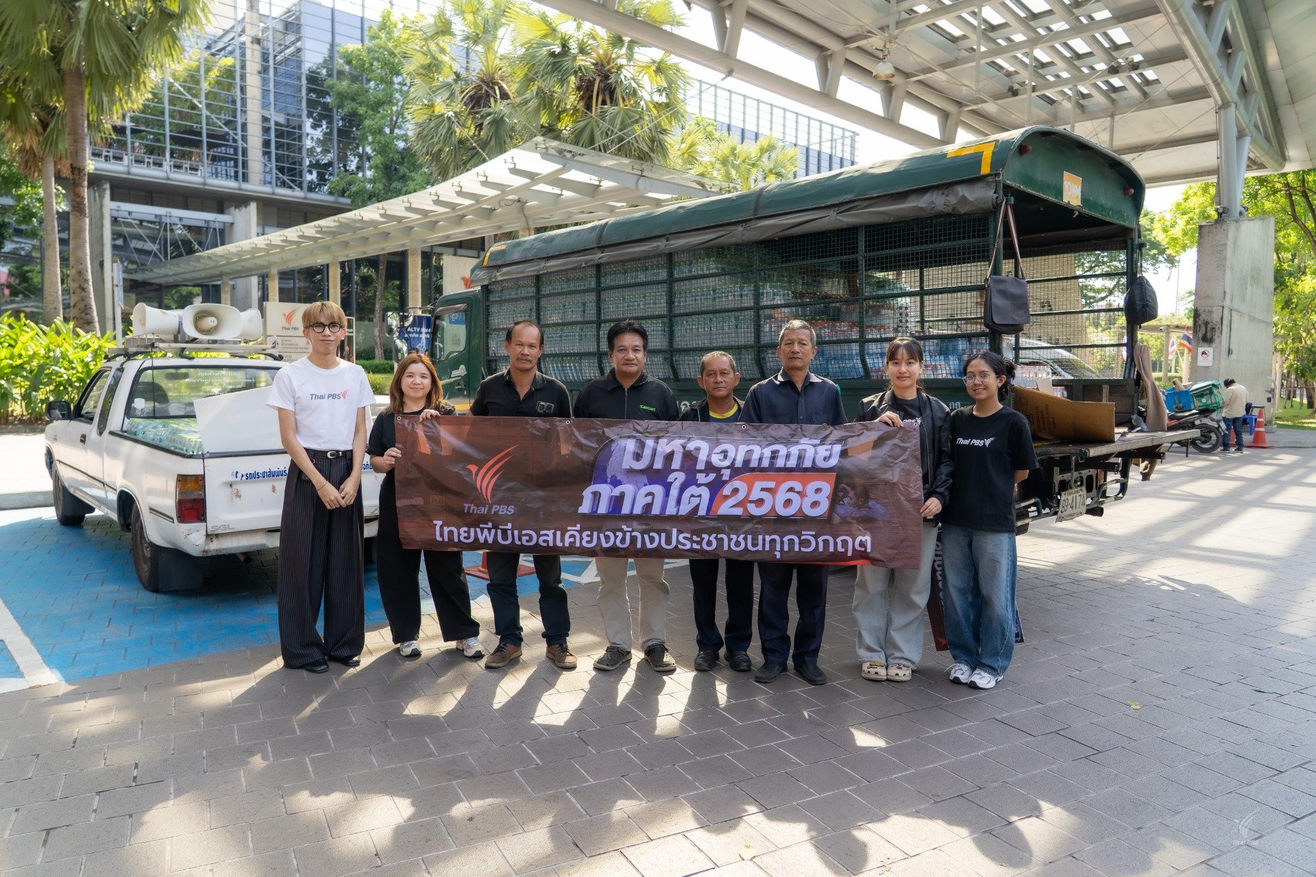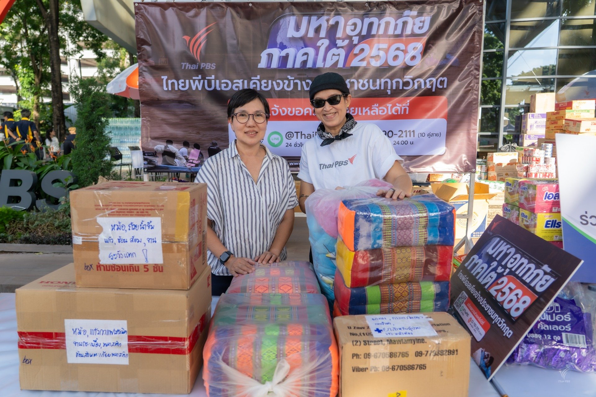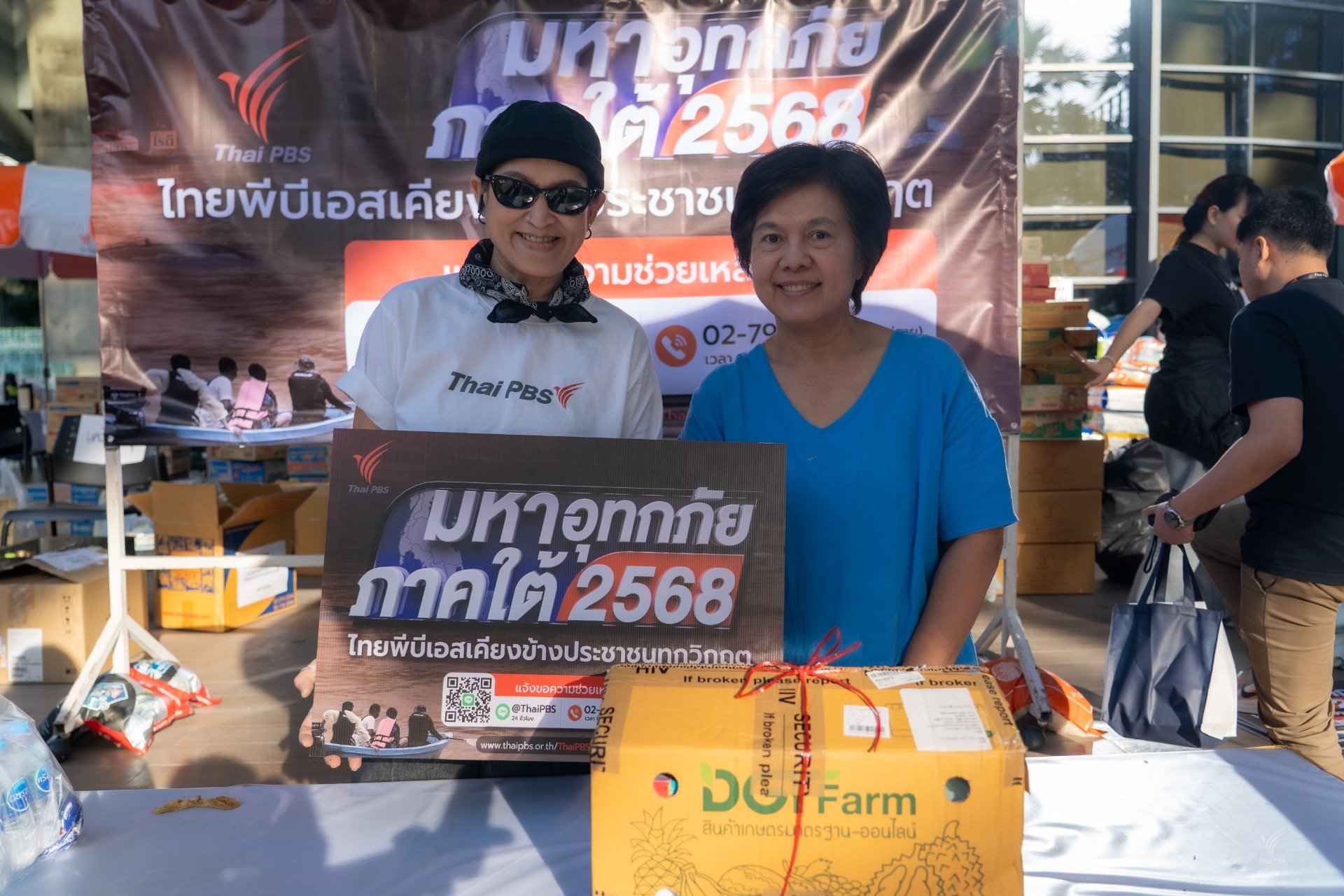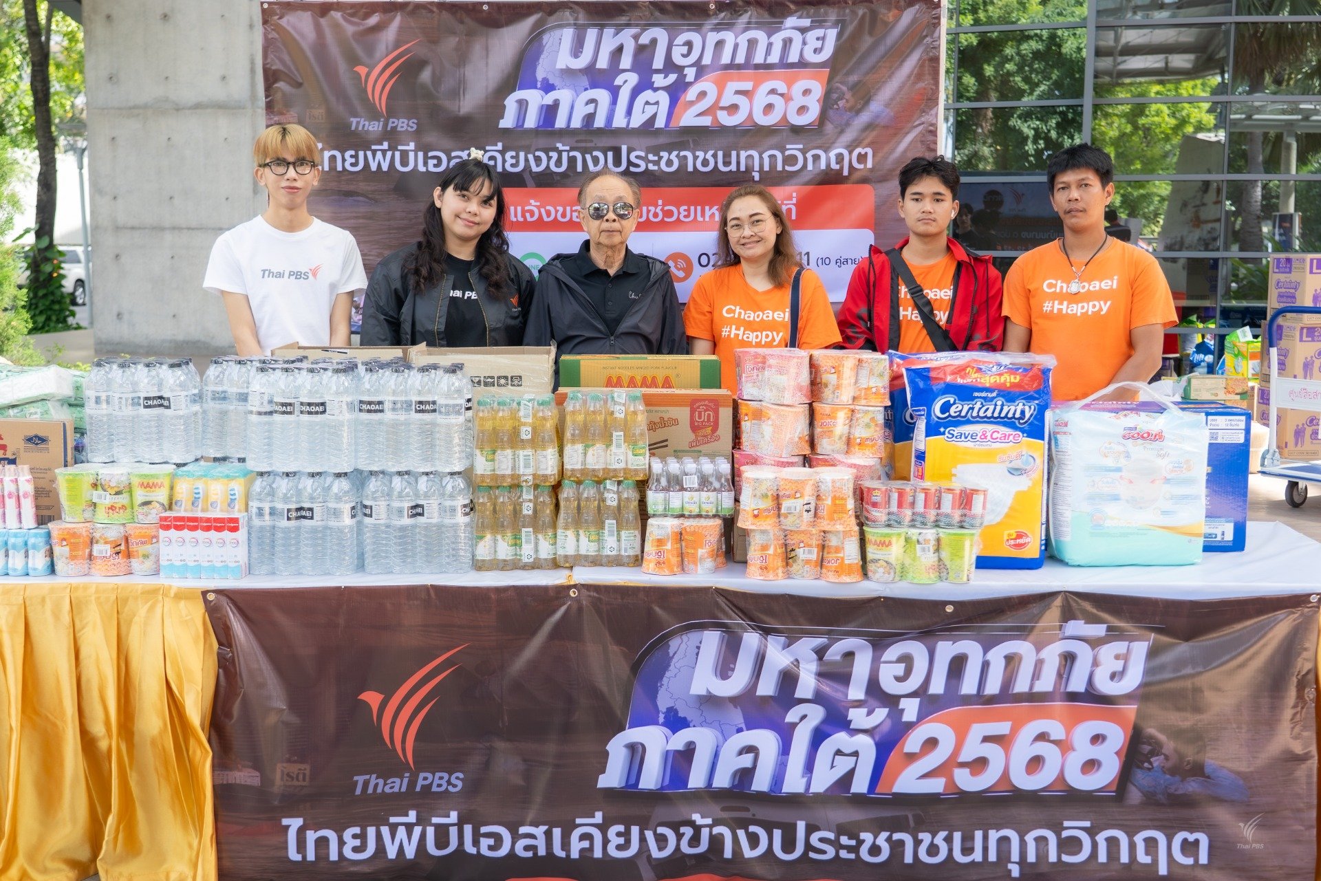 ประมาลภาพบรรยกาศ ภารกิจระดมกำลังช่วยน้ำท่วมหาดใหญ่ ของ "ศูนย์ประสานความช่วยเหลือมหาอุทกภัยภาคใต้ 2568" วันที่ 28 พ.ย. ไทยพีบีเอส ร่วมกับทีม “ต้องรอด Up For Thai” ในการ โดยเร่งลำเลียงเสบียงและอุปกรณ์จำเป็นจากกรุงเทพฯ สู่จังหวัดสงขลา ผ่านการสนับสนุนของ สายการบินแอร์เอเชีย และรถบรรทุก 10 ล้อ จากมูลนิธิพุทธภูมิธรรม ถือว่าได้รับการช่วยเหลือขนส่งทั้งทางบกและทางอากาศ ขณะที่มีผู้ให้ความสนใจนำสิ่งของมาร่วมบริจาคจำนวนมาก อาทิ มูลนิธิปันสุข และ Shavich Holding มหาวิทยาลัยเกษตรศาสตร์ กรมส่งเสริมการเกษตร บริษัทฮีโน่มอเตอร์เซลส์ประเทศไทย ข้าววรรณภพ บริษัทไบโอฟาร์มเคมีคอล จำกัด โรงเรียนวรรัตน์ศึกษา โรงเรียนดิลกศึกษา สวทช. บริษัทรักษาความปลอดภัย guard force cash solution ประเทศไทย จำกัด รวมถึงภาคประชาชนที่ยังคงทยอยนำสิ่งของมาร่วมบริจาคให้อย่างไม่ขาดสาย เพื่อส่งไปยัง สำนักงาน กสทช. เขต 4 อ.หาดใหญ่ ที่ให้การสนับสนุนสถานที่จัดเก็บและจัดทำถุงยังชีพ โดยมีเจ้าหน้าที่จิตอาสาไทยพีบีเอส ทำหน้าที่ลำเลียงและคัดแยกสิ่งของที่ได้รับบริจาค อาทิ ข้าวสาร อาหารกระป๋อง อาหารแห้ง น้ำดื่ม ยารักษาโรค ผ้าอนามัย นม ผ้าอ้อม เสื้อผ้า อาหารสัตว์เลี้ยง และของจำเป็นอื่น ๆ ขนขึ้นรถเพื่อนำไปสู่พื้นที่ประสบอุทกภัย