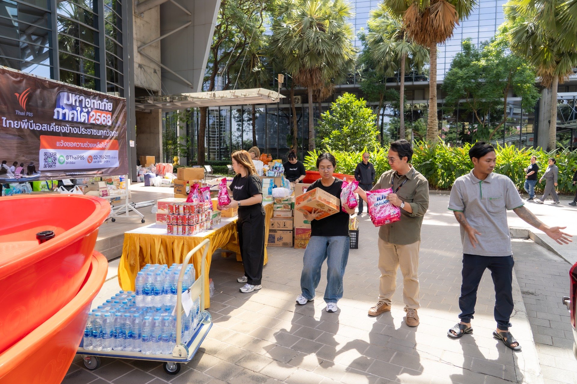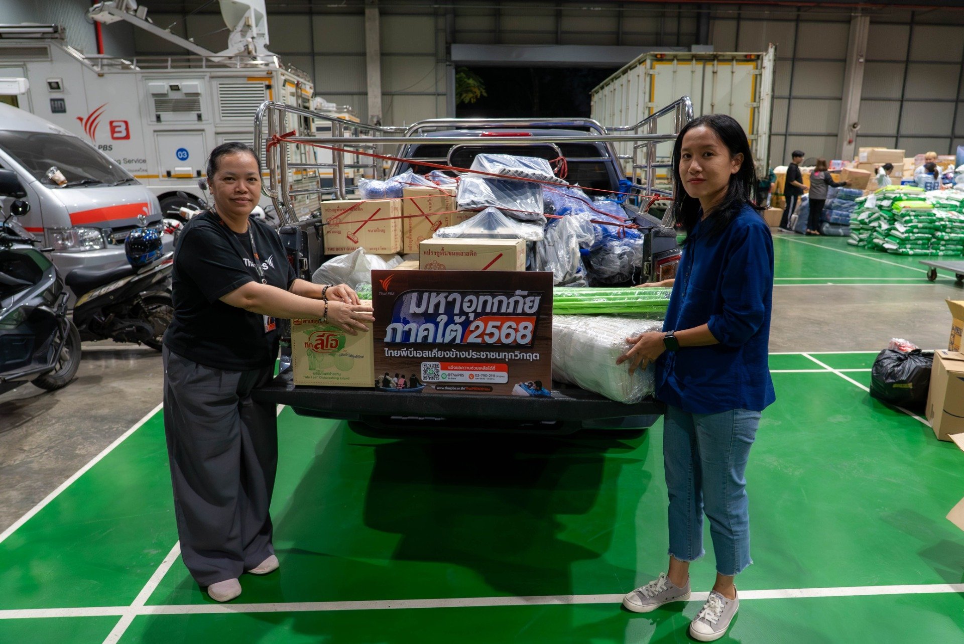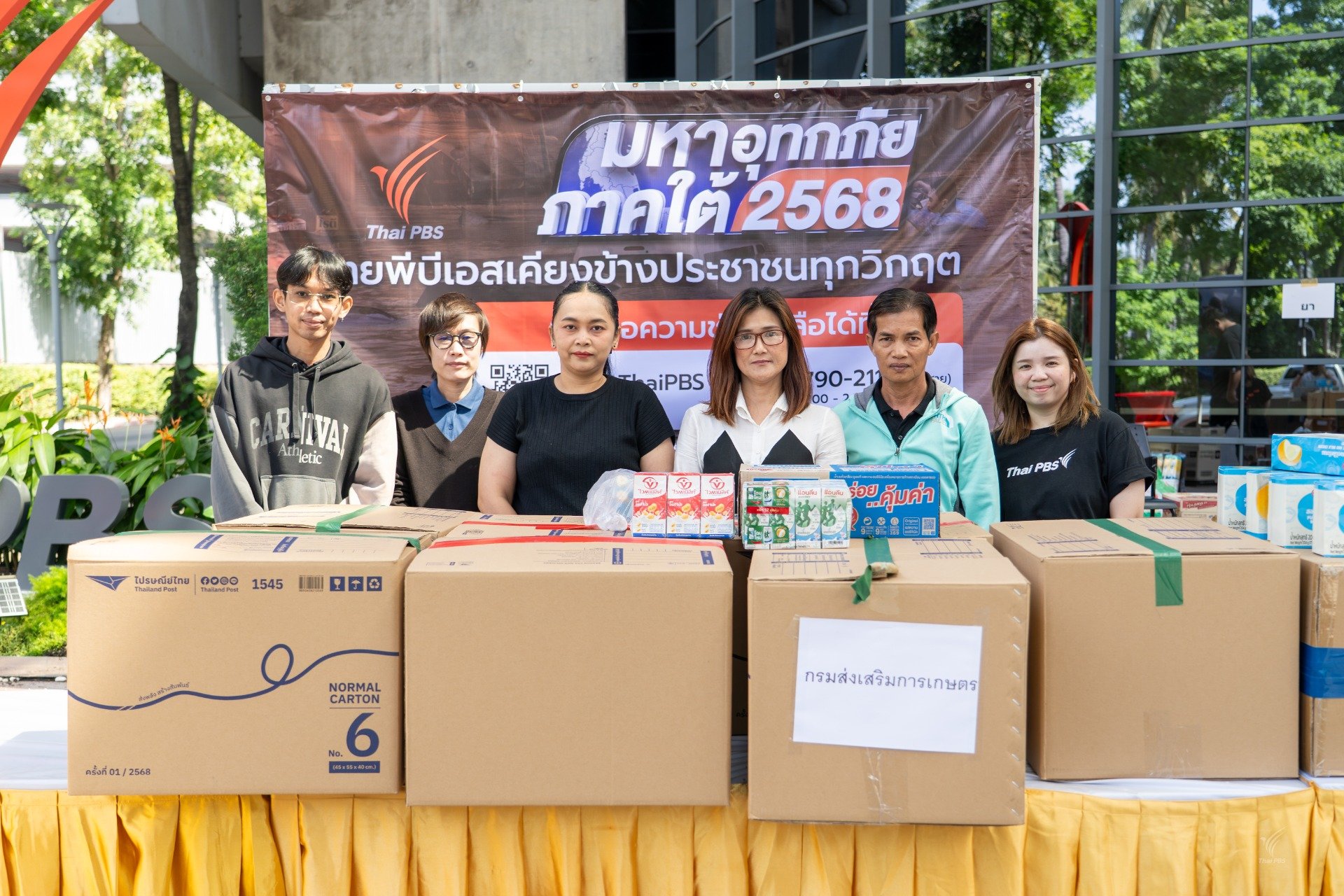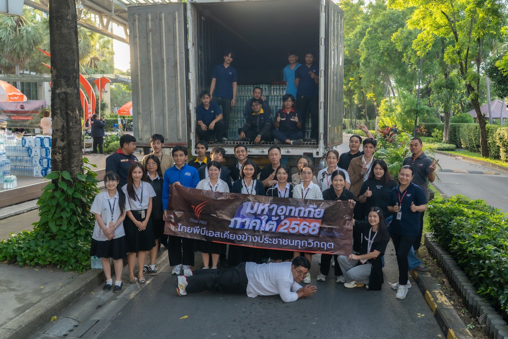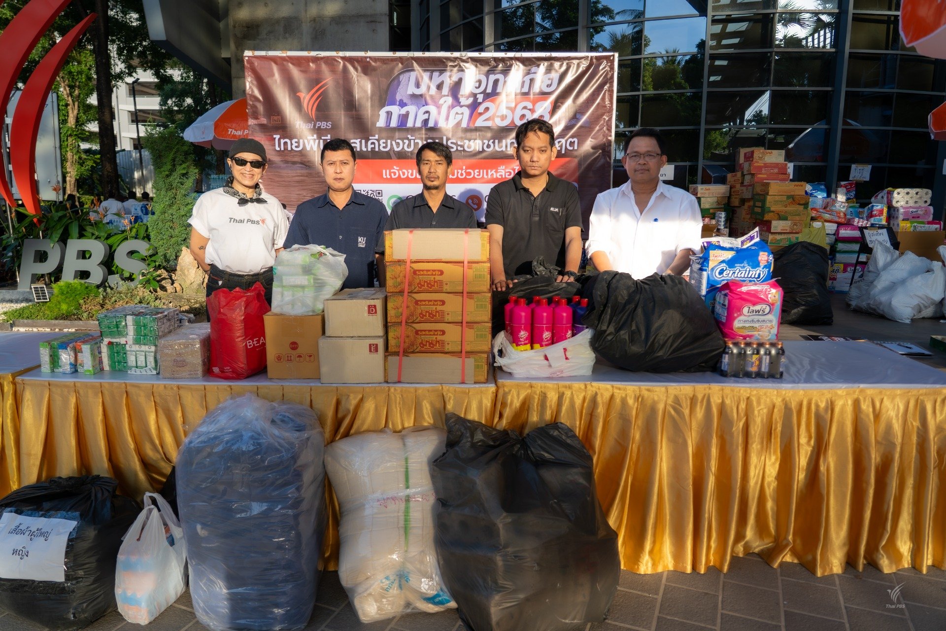 ประมาลภาพบรรยกาศ ภารกิจระดมกำลังช่วยน้ำท่วมหาดใหญ่ ของ "ศูนย์ประสานความช่วยเหลือมหาอุทกภัยภาคใต้ 2568" วันที่ 28 พ.ย. ไทยพีบีเอส ร่วมกับทีม “ต้องรอด Up For Thai” ในการ โดยเร่งลำเลียงเสบียงและอุปกรณ์จำเป็นจากกรุงเทพฯ สู่จังหวัดสงขลา ผ่านการสนับสนุนของ สายการบินแอร์เอเชีย และรถบรรทุก 10 ล้อ จากมูลนิธิพุทธภูมิธรรม ถือว่าได้รับการช่วยเหลือขนส่งทั้งทางบกและทางอากาศ ขณะที่มีผู้ให้ความสนใจนำสิ่งของมาร่วมบริจาคจำนวนมาก อาทิ มูลนิธิปันสุข และ Shavich Holding มหาวิทยาลัยเกษตรศาสตร์ กรมส่งเสริมการเกษตร บริษัทฮีโน่มอเตอร์เซลส์ประเทศไทย ข้าววรรณภพ บริษัทไบโอฟาร์มเคมีคอล จำกัด โรงเรียนวรรัตน์ศึกษา โรงเรียนดิลกศึกษา สวทช. บริษัทรักษาความปลอดภัย guard force cash solution ประเทศไทย จำกัด รวมถึงภาคประชาชนที่ยังคงทยอยนำสิ่งของมาร่วมบริจาคให้อย่างไม่ขาดสาย เพื่อส่งไปยัง สำนักงาน กสทช. เขต 4 อ.หาดใหญ่ ที่ให้การสนับสนุนสถานที่จัดเก็บและจัดทำถุงยังชีพ โดยมีเจ้าหน้าที่จิตอาสาไทยพีบีเอส ทำหน้าที่ลำเลียงและคัดแยกสิ่งของที่ได้รับบริจาค อาทิ ข้าวสาร อาหารกระป๋อง อาหารแห้ง น้ำดื่ม ยารักษาโรค ผ้าอนามัย นม ผ้าอ้อม เสื้อผ้า อาหารสัตว์เลี้ยง และของจำเป็นอื่น ๆ ขนขึ้นรถเพื่อนำไปสู่พื้นที่ประสบอุทกภัย