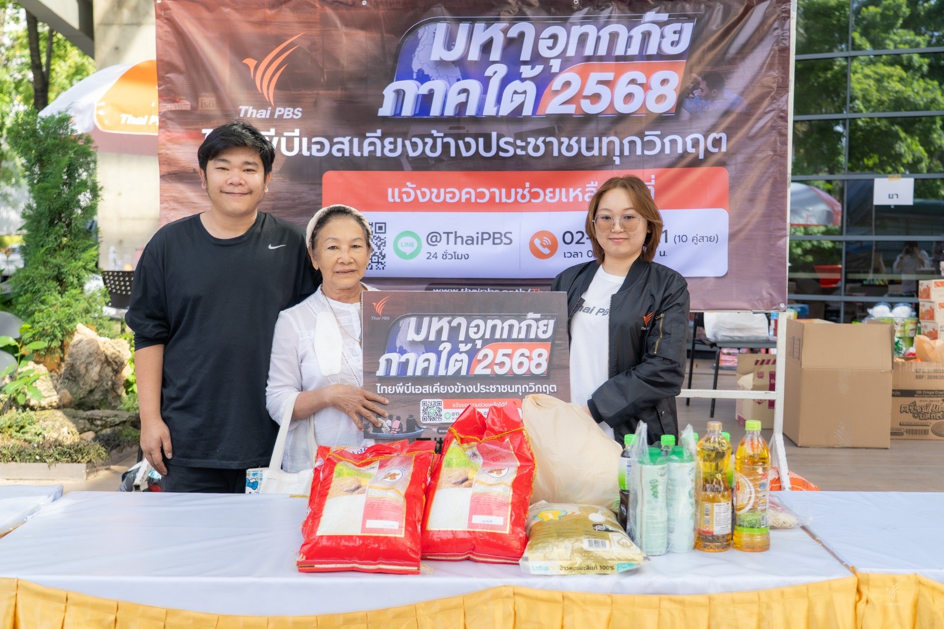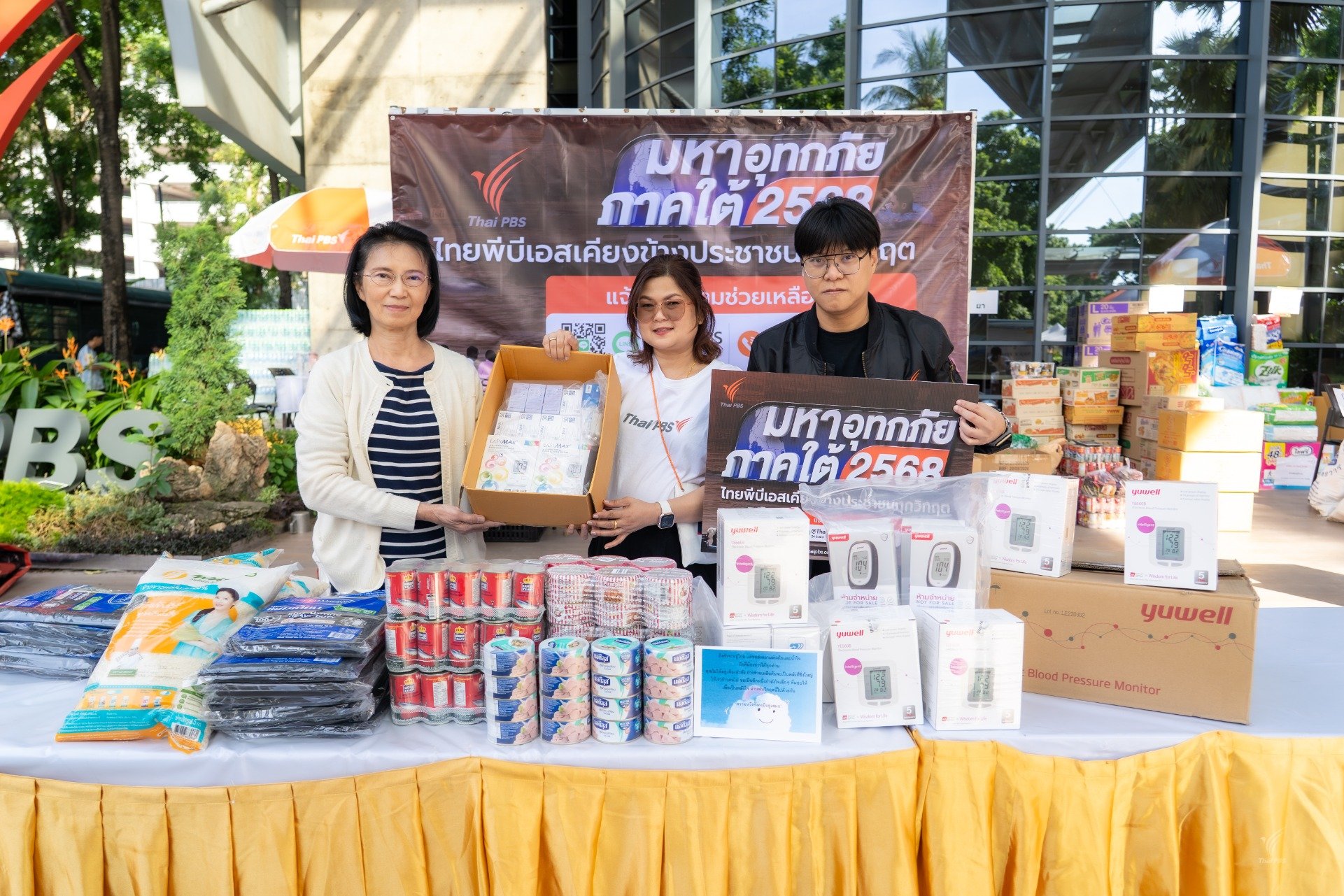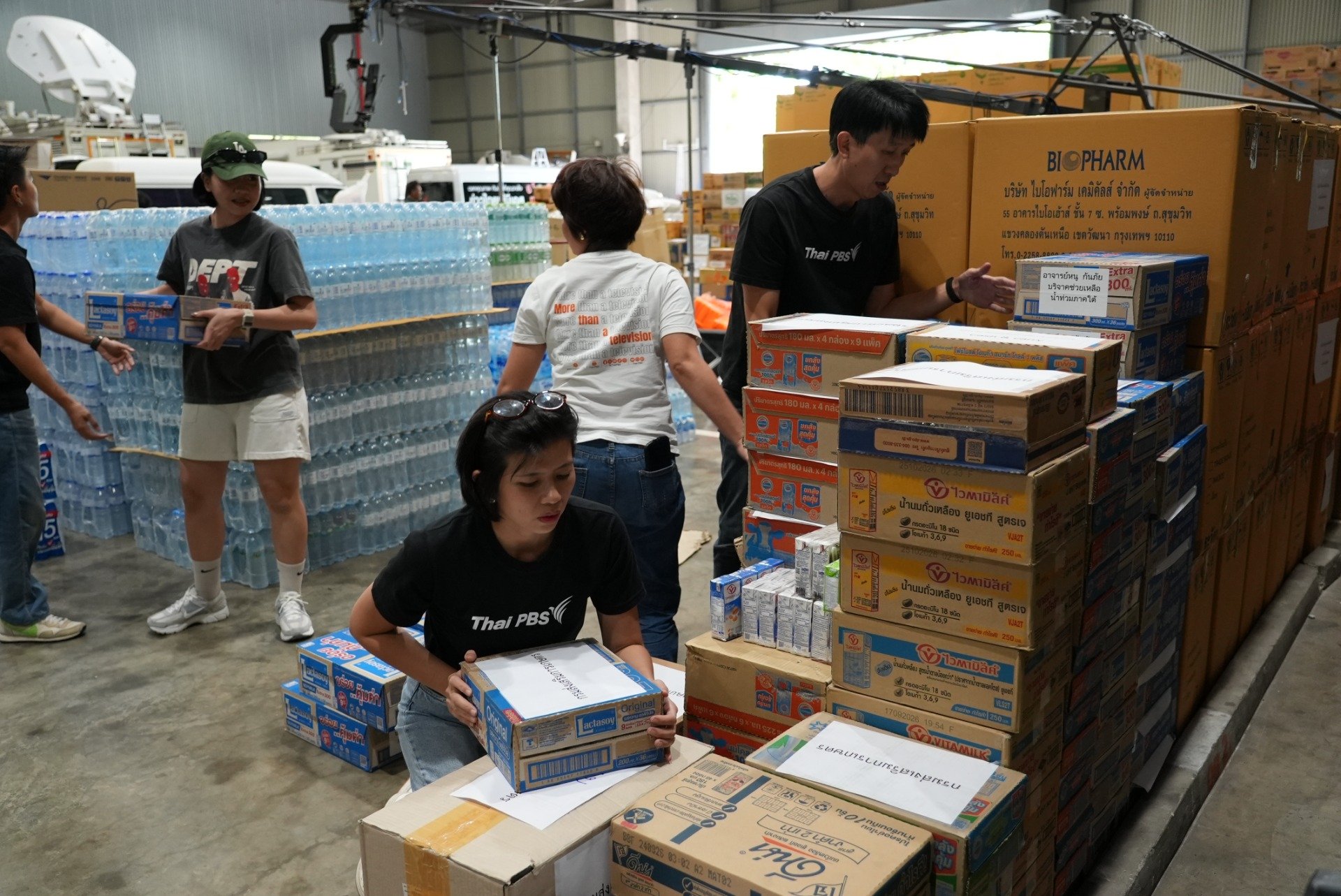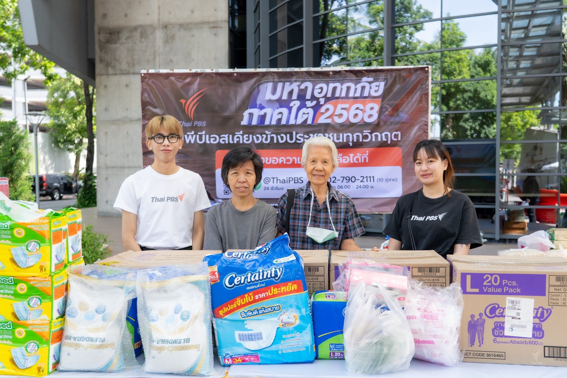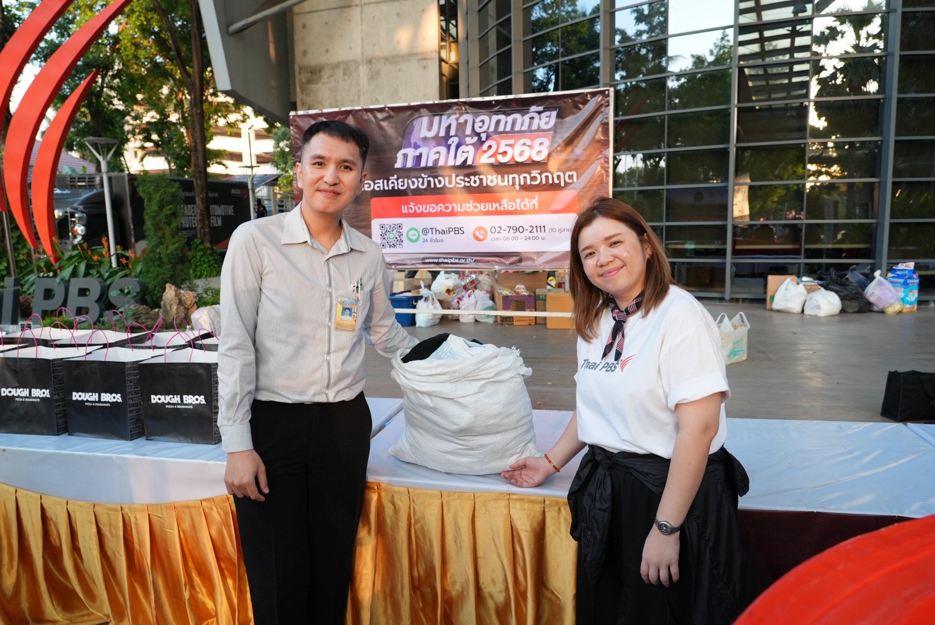 ประมาลภาพบรรยกาศ ภารกิจระดมกำลังช่วยน้ำท่วมหาดใหญ่ ของ "ศูนย์ประสานความช่วยเหลือมหาอุทกภัยภาคใต้ 2568" วันที่ 28 พ.ย. ไทยพีบีเอส ร่วมกับทีม “ต้องรอด Up For Thai” ในการ โดยเร่งลำเลียงเสบียงและอุปกรณ์จำเป็นจากกรุงเทพฯ สู่จังหวัดสงขลา ผ่านการสนับสนุนของ สายการบินแอร์เอเชีย และรถบรรทุก 10 ล้อ จากมูลนิธิพุทธภูมิธรรม ถือว่าได้รับการช่วยเหลือขนส่งทั้งทางบกและทางอากาศ ขณะที่มีผู้ให้ความสนใจนำสิ่งของมาร่วมบริจาคจำนวนมาก อาทิ มูลนิธิปันสุข และ Shavich Holding มหาวิทยาลัยเกษตรศาสตร์ กรมส่งเสริมการเกษตร บริษัทฮีโน่มอเตอร์เซลส์ประเทศไทย ข้าววรรณภพ บริษัทไบโอฟาร์มเคมีคอล จำกัด โรงเรียนวรรัตน์ศึกษา โรงเรียนดิลกศึกษา สวทช. บริษัทรักษาความปลอดภัย guard force cash solution ประเทศไทย จำกัด รวมถึงภาคประชาชนที่ยังคงทยอยนำสิ่งของมาร่วมบริจาคให้อย่างไม่ขาดสาย เพื่อส่งไปยัง สำนักงาน กสทช. เขต 4 อ.หาดใหญ่ ที่ให้การสนับสนุนสถานที่จัดเก็บและจัดทำถุงยังชีพ โดยมีเจ้าหน้าที่จิตอาสาไทยพีบีเอส ทำหน้าที่ลำเลียงและคัดแยกสิ่งของที่ได้รับบริจาค อาทิ ข้าวสาร อาหารกระป๋อง อาหารแห้ง น้ำดื่ม ยารักษาโรค ผ้าอนามัย นม ผ้าอ้อม เสื้อผ้า อาหารสัตว์เลี้ยง และของจำเป็นอื่น ๆ ขนขึ้นรถเพื่อนำไปสู่พื้นที่ประสบอุทกภัย