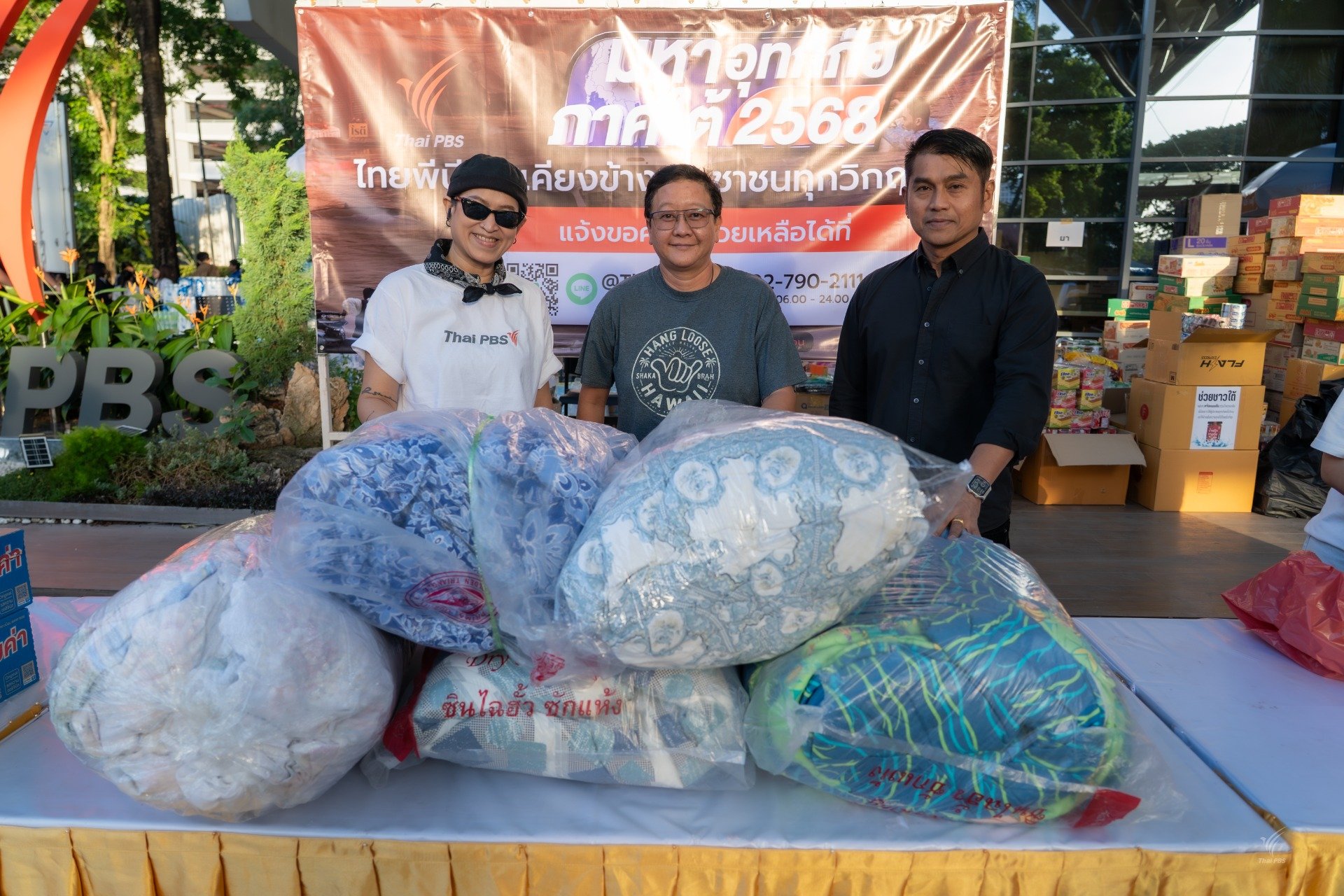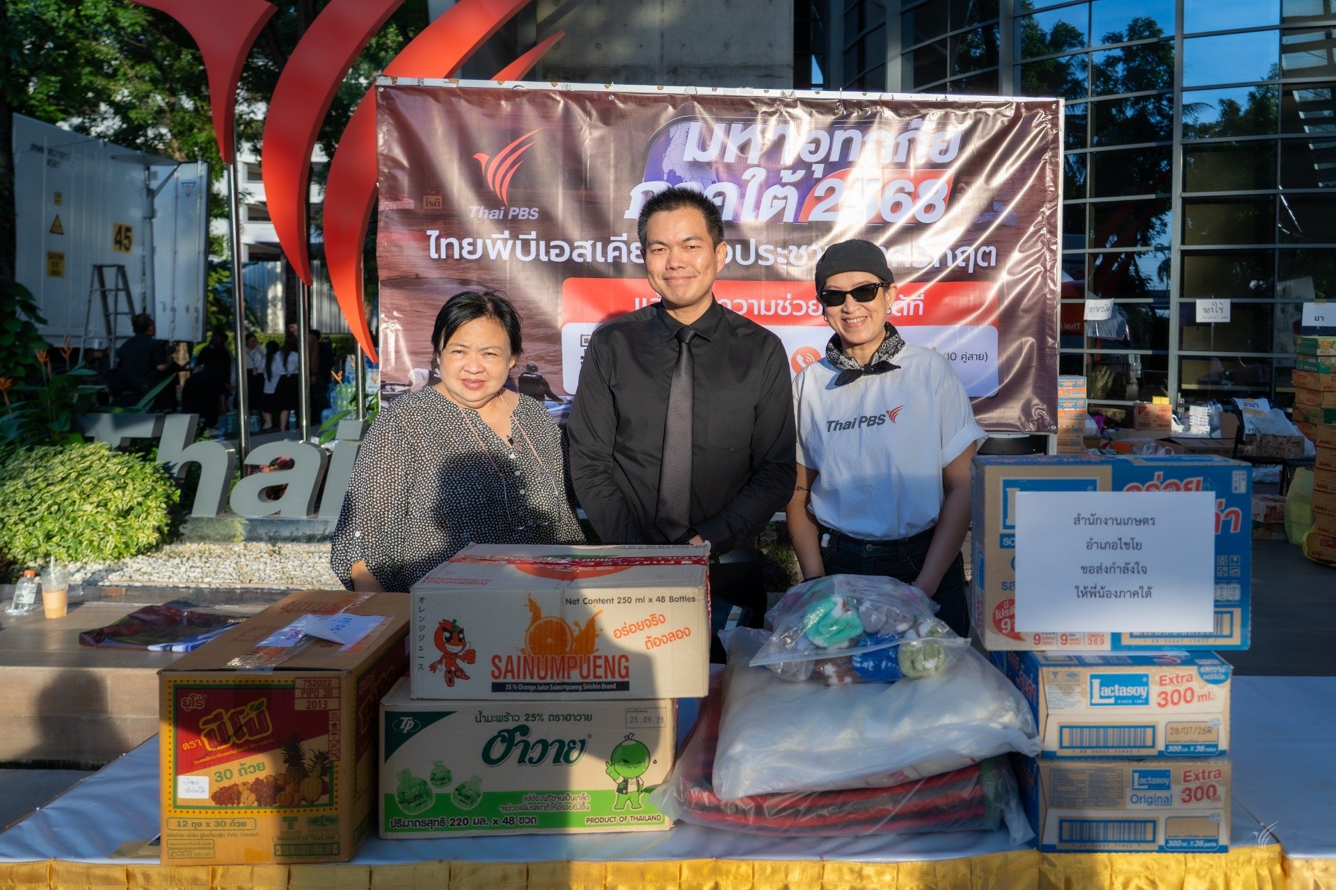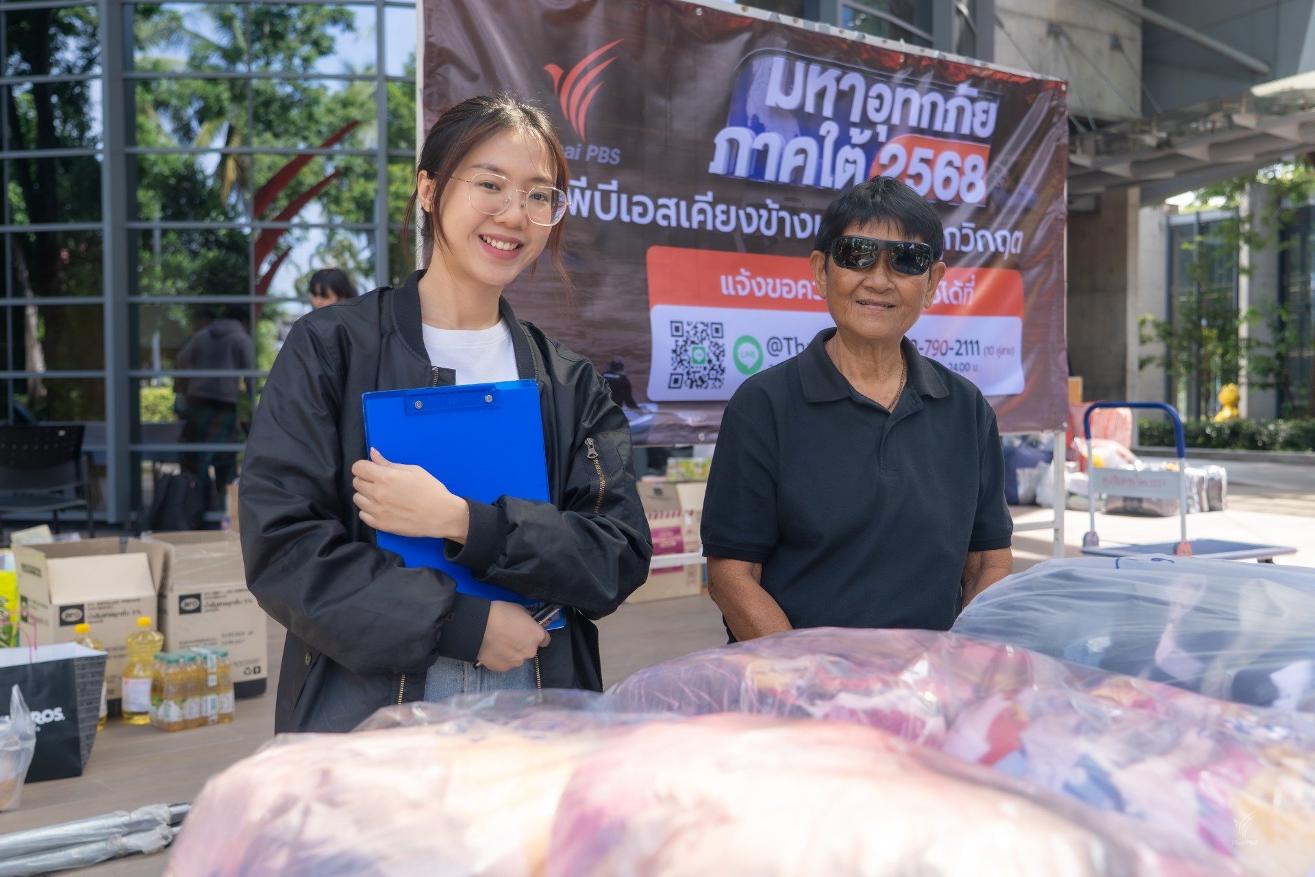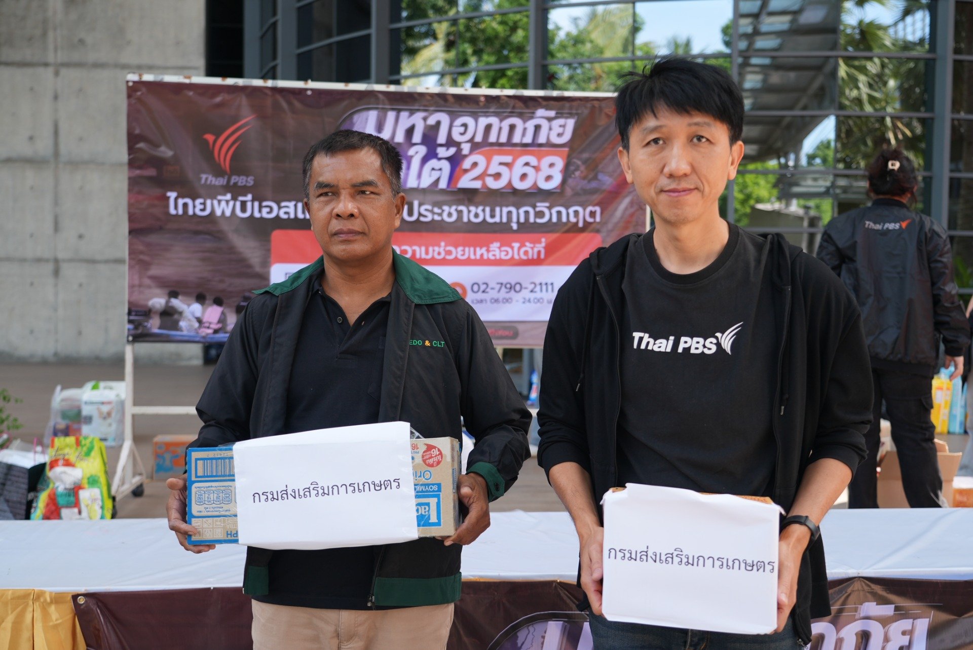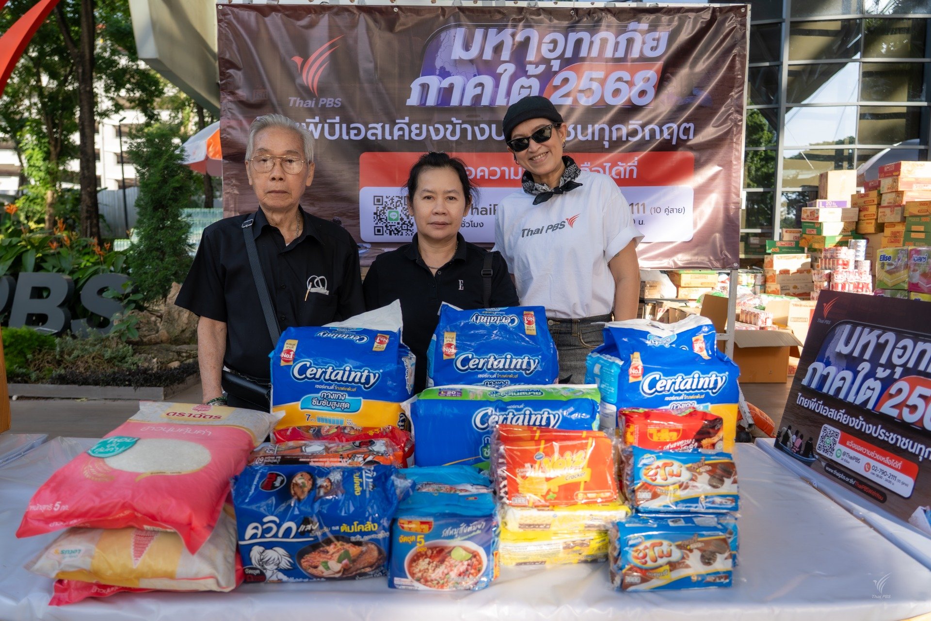 ประมาลภาพบรรยกาศ ภารกิจระดมกำลังช่วยน้ำท่วมหาดใหญ่ ของ "ศูนย์ประสานความช่วยเหลือมหาอุทกภัยภาคใต้ 2568" วันที่ 28 พ.ย. ไทยพีบีเอส ร่วมกับทีม “ต้องรอด Up For Thai” ในการ โดยเร่งลำเลียงเสบียงและอุปกรณ์จำเป็นจากกรุงเทพฯ สู่จังหวัดสงขลา ผ่านการสนับสนุนของ สายการบินแอร์เอเชีย และรถบรรทุก 10 ล้อ จากมูลนิธิพุทธภูมิธรรม ถือว่าได้รับการช่วยเหลือขนส่งทั้งทางบกและทางอากาศ ขณะที่มีผู้ให้ความสนใจนำสิ่งของมาร่วมบริจาคจำนวนมาก อาทิ มูลนิธิปันสุข และ Shavich Holding มหาวิทยาลัยเกษตรศาสตร์ กรมส่งเสริมการเกษตร บริษัทฮีโน่มอเตอร์เซลส์ประเทศไทย ข้าววรรณภพ บริษัทไบโอฟาร์มเคมีคอล จำกัด โรงเรียนวรรัตน์ศึกษา โรงเรียนดิลกศึกษา สวทช. บริษัทรักษาความปลอดภัย guard force cash solution ประเทศไทย จำกัด รวมถึงภาคประชาชนที่ยังคงทยอยนำสิ่งของมาร่วมบริจาคให้อย่างไม่ขาดสาย เพื่อส่งไปยัง สำนักงาน กสทช. เขต 4 อ.หาดใหญ่ ที่ให้การสนับสนุนสถานที่จัดเก็บและจัดทำถุงยังชีพ โดยมีเจ้าหน้าที่จิตอาสาไทยพีบีเอส ทำหน้าที่ลำเลียงและคัดแยกสิ่งของที่ได้รับบริจาค อาทิ ข้าวสาร อาหารกระป๋อง อาหารแห้ง น้ำดื่ม ยารักษาโรค ผ้าอนามัย นม ผ้าอ้อม เสื้อผ้า อาหารสัตว์เลี้ยง และของจำเป็นอื่น ๆ ขนขึ้นรถเพื่อนำไปสู่พื้นที่ประสบอุทกภัย