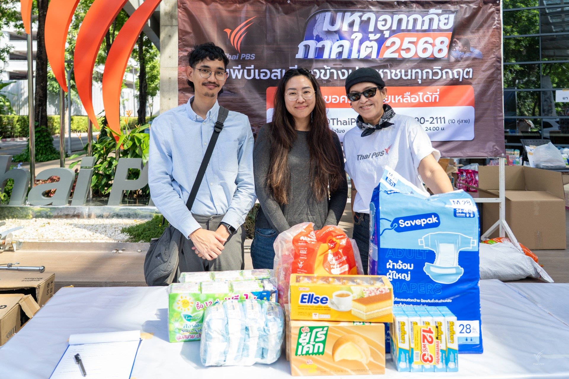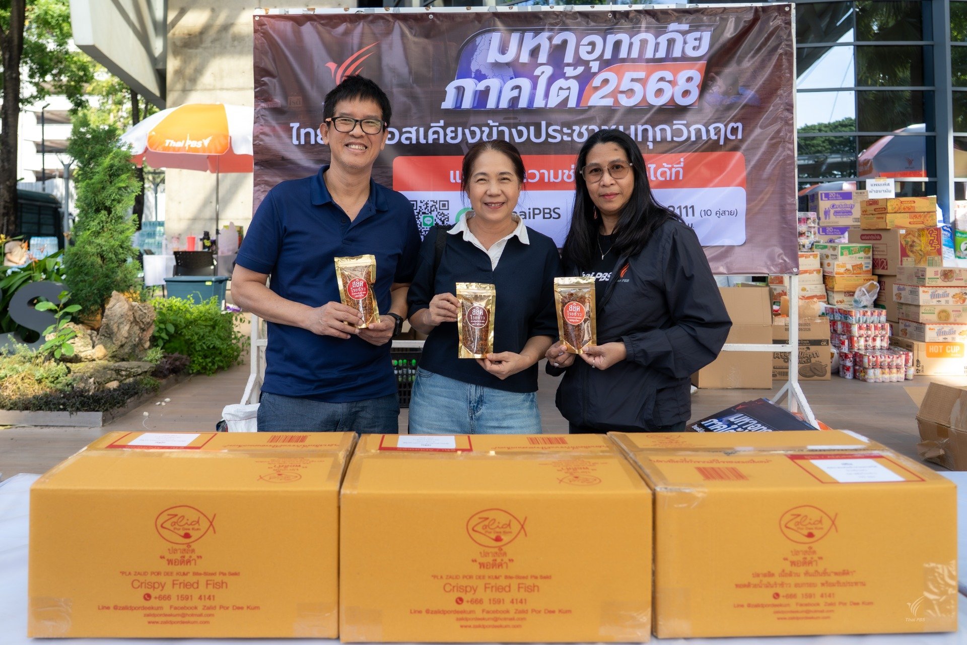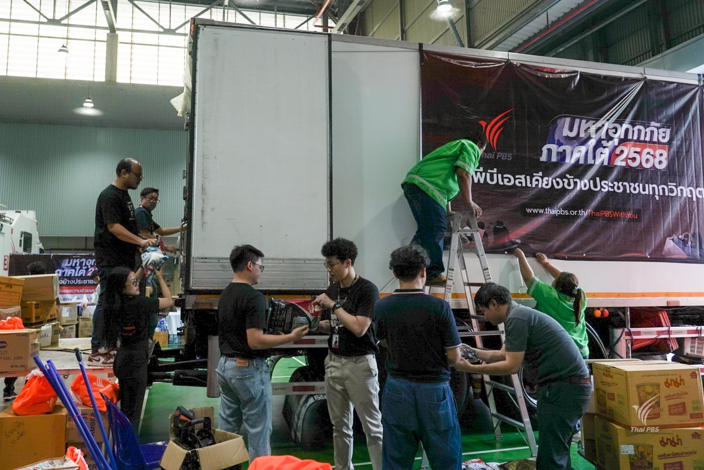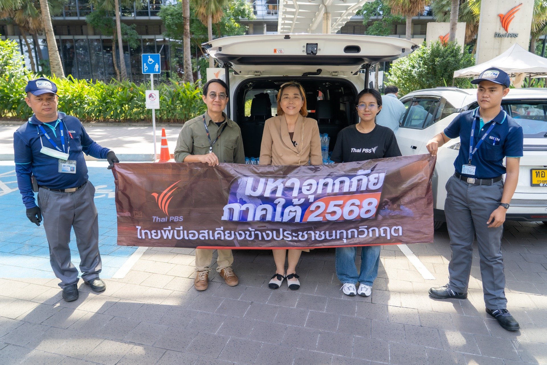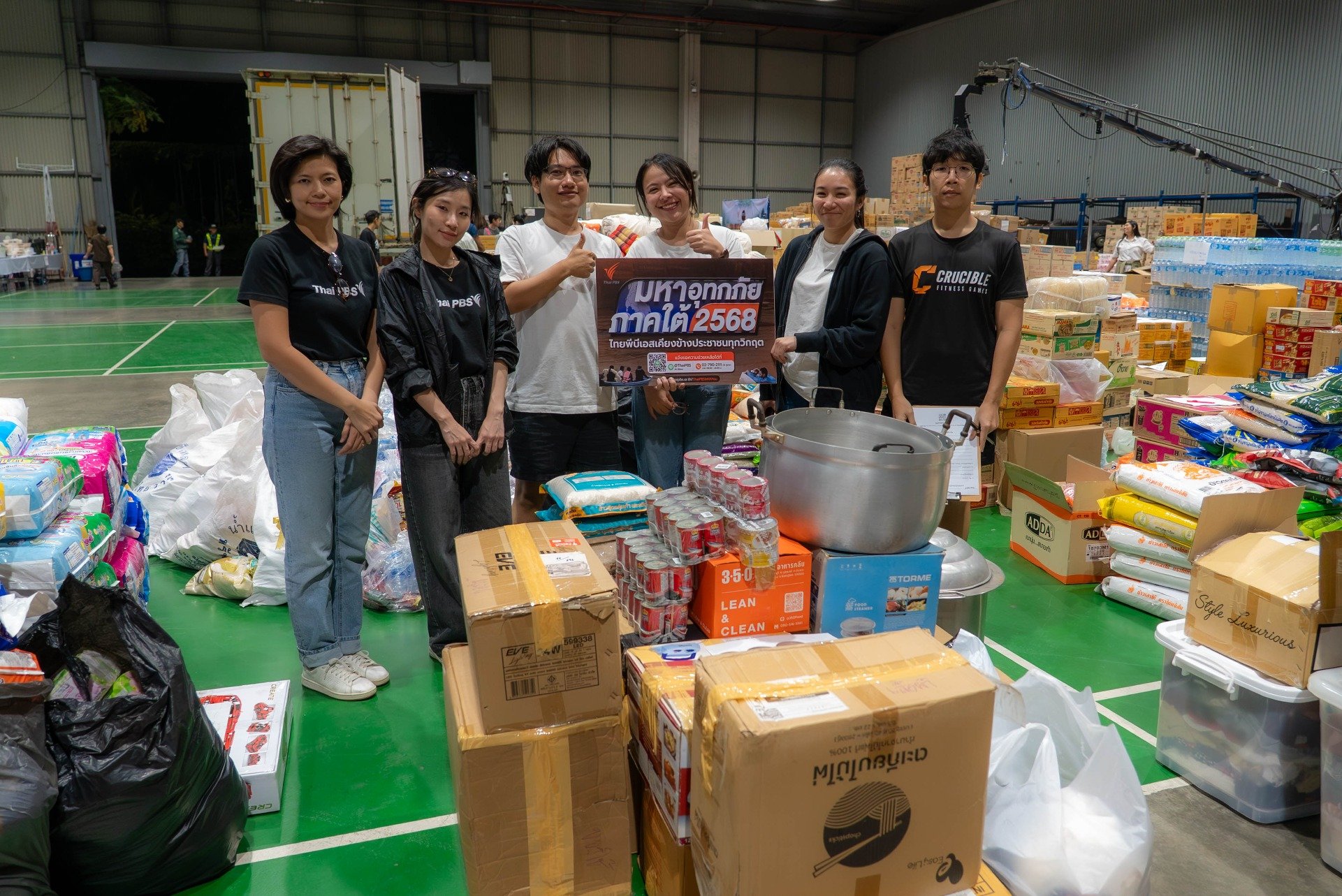 ประมาลภาพบรรยกาศ ภารกิจระดมกำลังช่วยน้ำท่วมหาดใหญ่ ของ "ศูนย์ประสานความช่วยเหลือมหาอุทกภัยภาคใต้ 2568" วันที่ 28 พ.ย. ไทยพีบีเอส ร่วมกับทีม “ต้องรอด Up For Thai” ในการ โดยเร่งลำเลียงเสบียงและอุปกรณ์จำเป็นจากกรุงเทพฯ สู่จังหวัดสงขลา ผ่านการสนับสนุนของ สายการบินแอร์เอเชีย และรถบรรทุก 10 ล้อ จากมูลนิธิพุทธภูมิธรรม ถือว่าได้รับการช่วยเหลือขนส่งทั้งทางบกและทางอากาศ ขณะที่มีผู้ให้ความสนใจนำสิ่งของมาร่วมบริจาคจำนวนมาก อาทิ มูลนิธิปันสุข และ Shavich Holding มหาวิทยาลัยเกษตรศาสตร์ กรมส่งเสริมการเกษตร บริษัทฮีโน่มอเตอร์เซลส์ประเทศไทย ข้าววรรณภพ บริษัทไบโอฟาร์มเคมีคอล จำกัด โรงเรียนวรรัตน์ศึกษา โรงเรียนดิลกศึกษา สวทช. บริษัทรักษาความปลอดภัย guard force cash solution ประเทศไทย จำกัด รวมถึงภาคประชาชนที่ยังคงทยอยนำสิ่งของมาร่วมบริจาคให้อย่างไม่ขาดสาย เพื่อส่งไปยัง สำนักงาน กสทช. เขต 4 อ.หาดใหญ่ ที่ให้การสนับสนุนสถานที่จัดเก็บและจัดทำถุงยังชีพ โดยมีเจ้าหน้าที่จิตอาสาไทยพีบีเอส ทำหน้าที่ลำเลียงและคัดแยกสิ่งของที่ได้รับบริจาค อาทิ ข้าวสาร อาหารกระป๋อง อาหารแห้ง น้ำดื่ม ยารักษาโรค ผ้าอนามัย นม ผ้าอ้อม เสื้อผ้า อาหารสัตว์เลี้ยง และของจำเป็นอื่น ๆ ขนขึ้นรถเพื่อนำไปสู่พื้นที่ประสบอุทกภัย