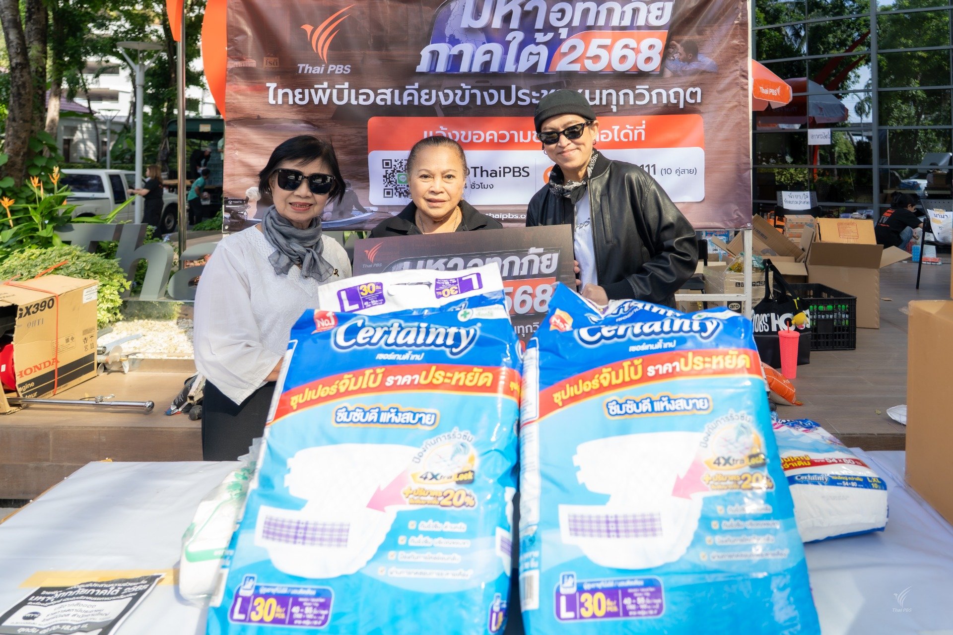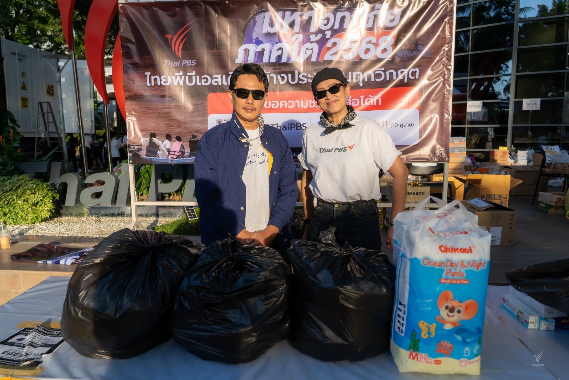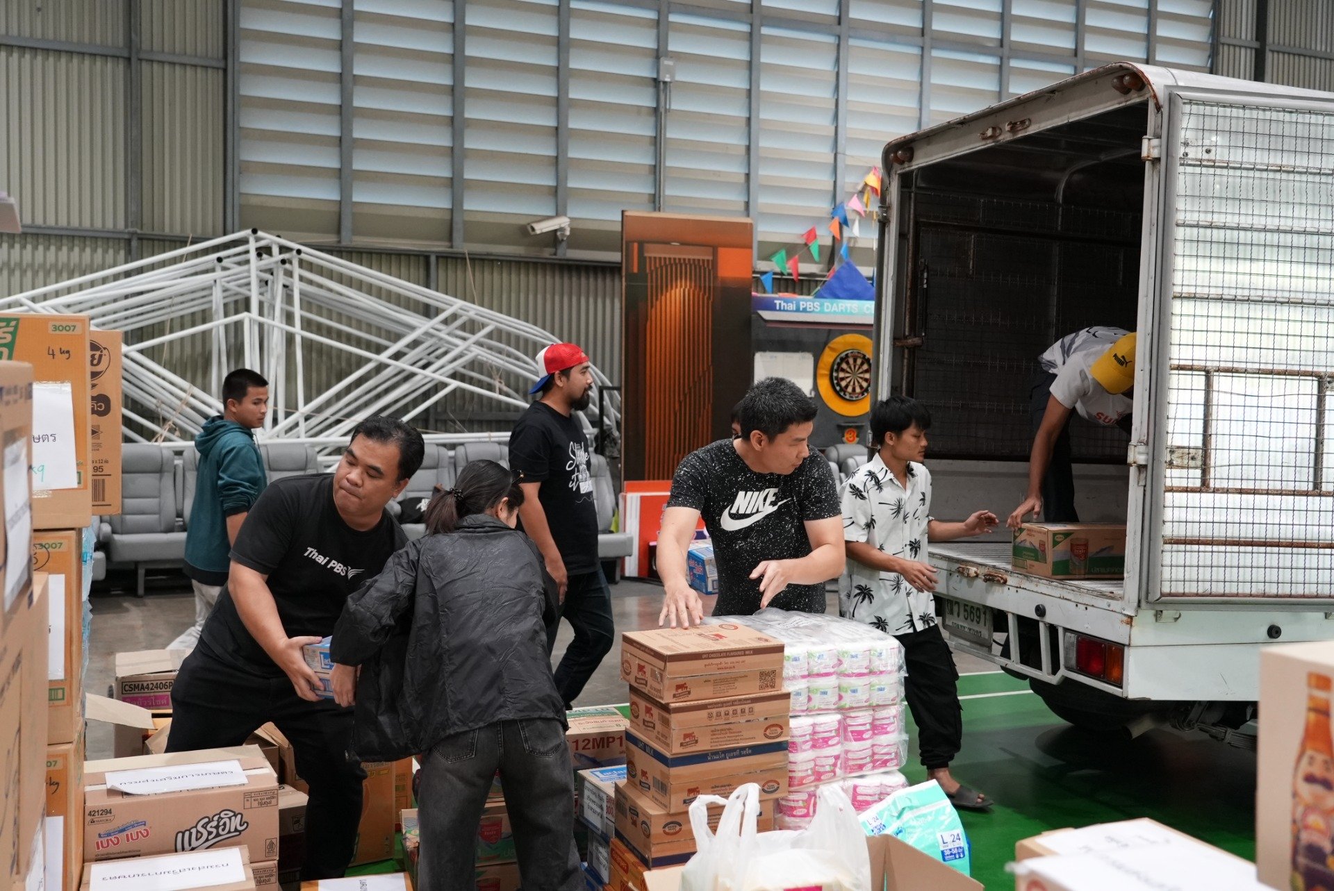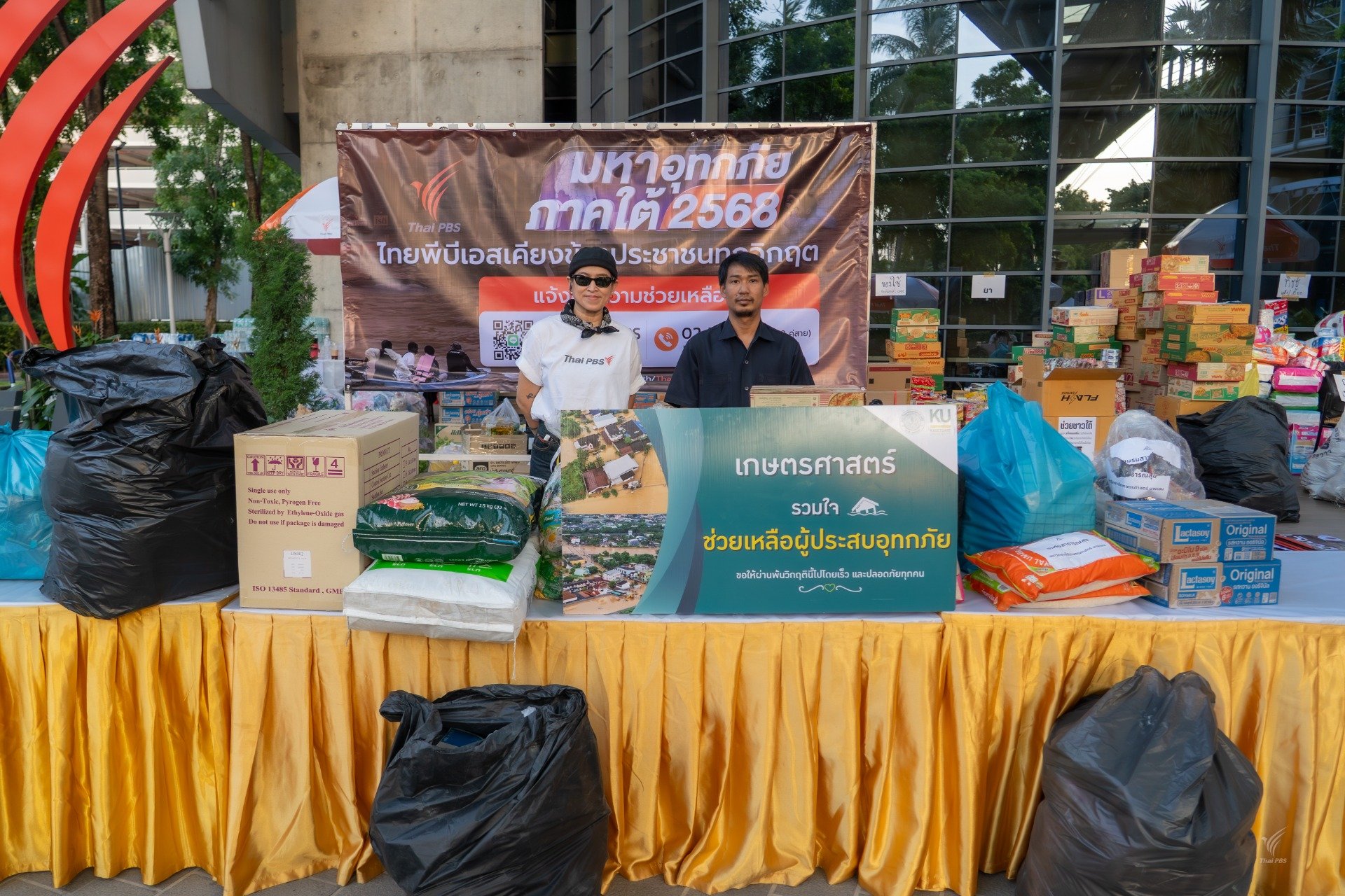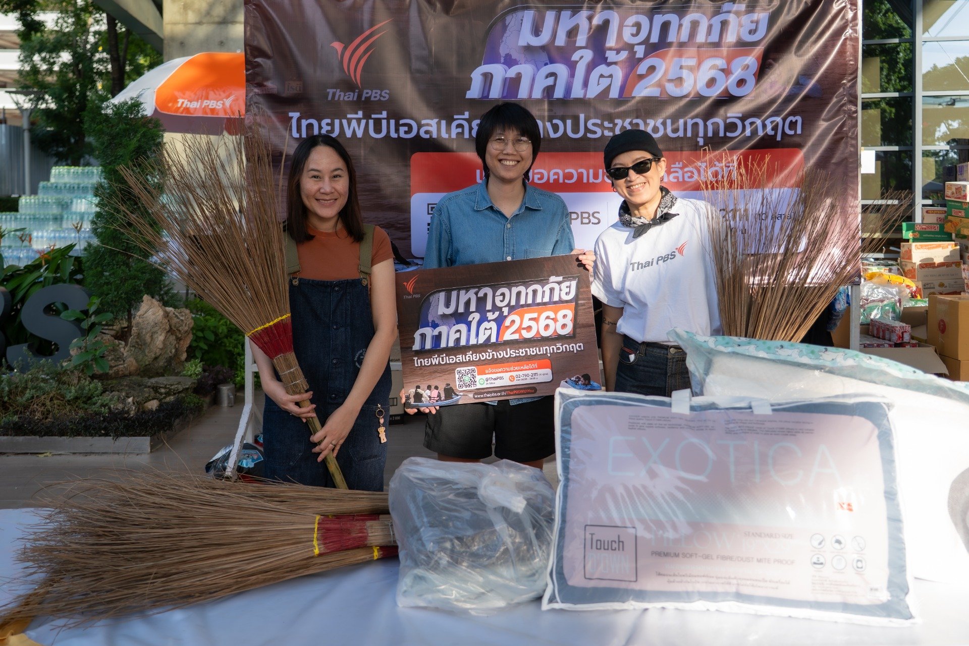 ประมาลภาพบรรยกาศ ภารกิจระดมกำลังช่วยน้ำท่วมหาดใหญ่ ของ "ศูนย์ประสานความช่วยเหลือมหาอุทกภัยภาคใต้ 2568" วันที่ 28 พ.ย. ไทยพีบีเอส ร่วมกับทีม “ต้องรอด Up For Thai” ในการ โดยเร่งลำเลียงเสบียงและอุปกรณ์จำเป็นจากกรุงเทพฯ สู่จังหวัดสงขลา ผ่านการสนับสนุนของ สายการบินแอร์เอเชีย และรถบรรทุก 10 ล้อ จากมูลนิธิพุทธภูมิธรรม ถือว่าได้รับการช่วยเหลือขนส่งทั้งทางบกและทางอากาศ ขณะที่มีผู้ให้ความสนใจนำสิ่งของมาร่วมบริจาคจำนวนมาก อาทิ มูลนิธิปันสุข และ Shavich Holding มหาวิทยาลัยเกษตรศาสตร์ กรมส่งเสริมการเกษตร บริษัทฮีโน่มอเตอร์เซลส์ประเทศไทย ข้าววรรณภพ บริษัทไบโอฟาร์มเคมีคอล จำกัด โรงเรียนวรรัตน์ศึกษา โรงเรียนดิลกศึกษา สวทช. บริษัทรักษาความปลอดภัย guard force cash solution ประเทศไทย จำกัด รวมถึงภาคประชาชนที่ยังคงทยอยนำสิ่งของมาร่วมบริจาคให้อย่างไม่ขาดสาย เพื่อส่งไปยัง สำนักงาน กสทช. เขต 4 อ.หาดใหญ่ ที่ให้การสนับสนุนสถานที่จัดเก็บและจัดทำถุงยังชีพ โดยมีเจ้าหน้าที่จิตอาสาไทยพีบีเอส ทำหน้าที่ลำเลียงและคัดแยกสิ่งของที่ได้รับบริจาค อาทิ ข้าวสาร อาหารกระป๋อง อาหารแห้ง น้ำดื่ม ยารักษาโรค ผ้าอนามัย นม ผ้าอ้อม เสื้อผ้า อาหารสัตว์เลี้ยง และของจำเป็นอื่น ๆ ขนขึ้นรถเพื่อนำไปสู่พื้นที่ประสบอุทกภัย