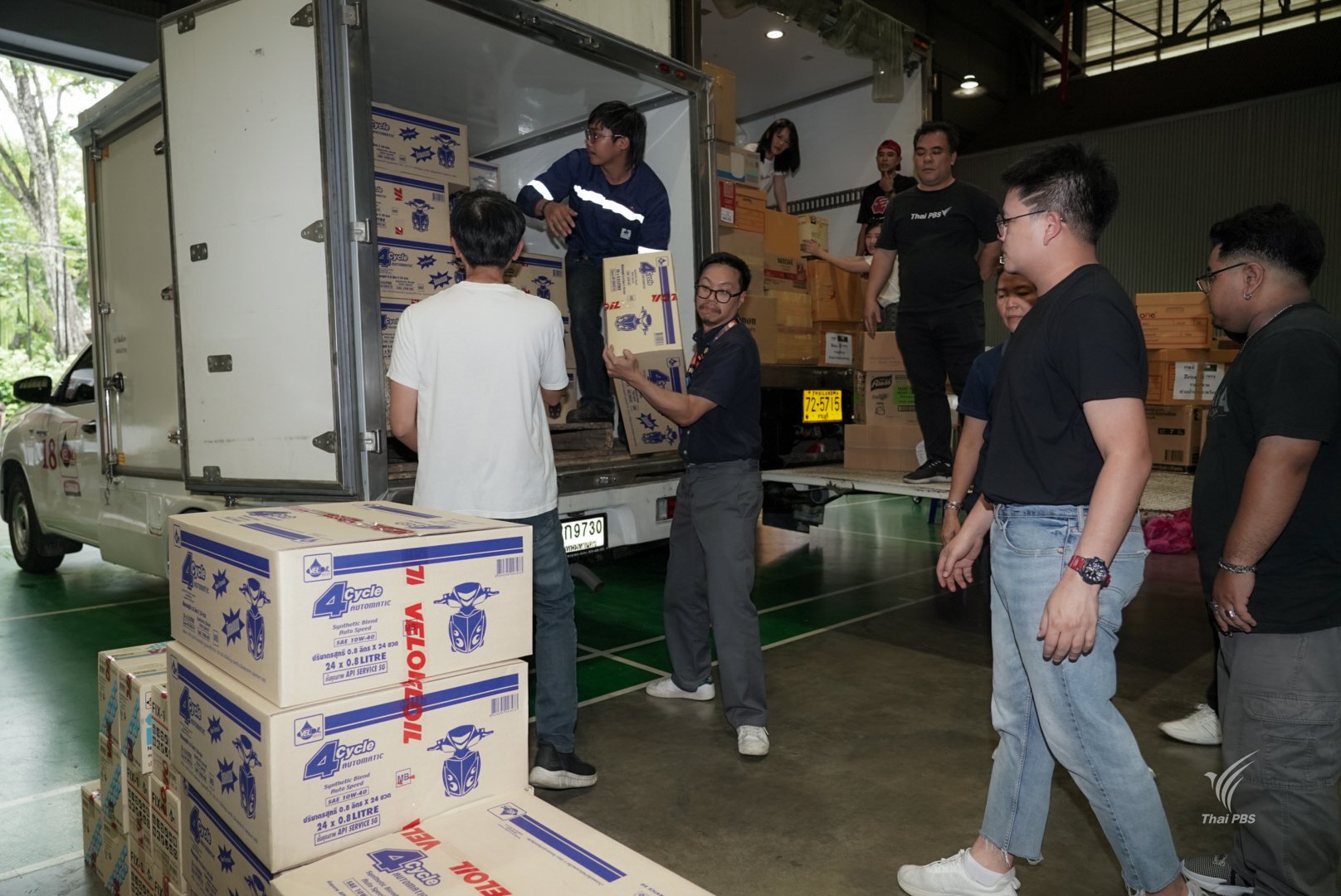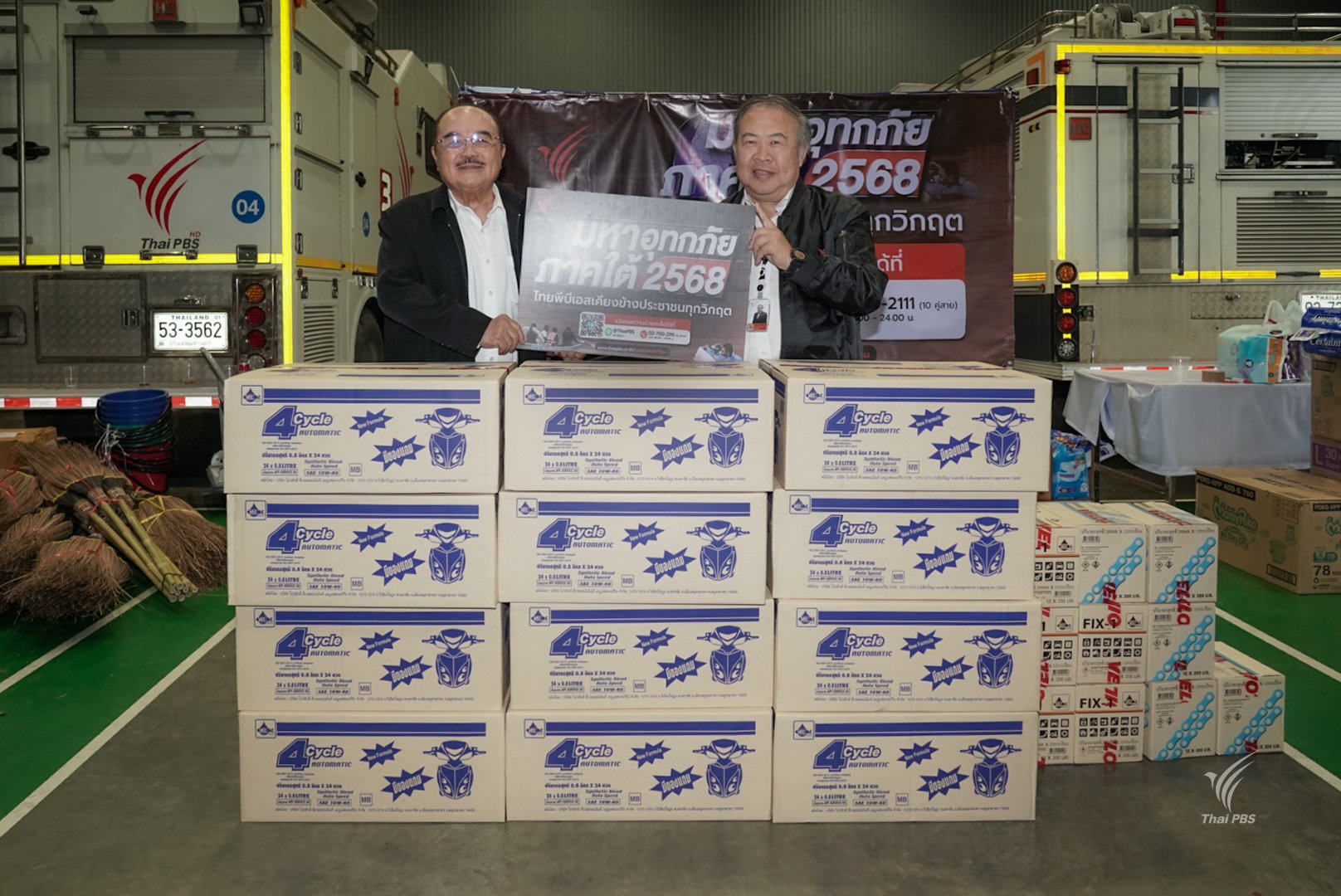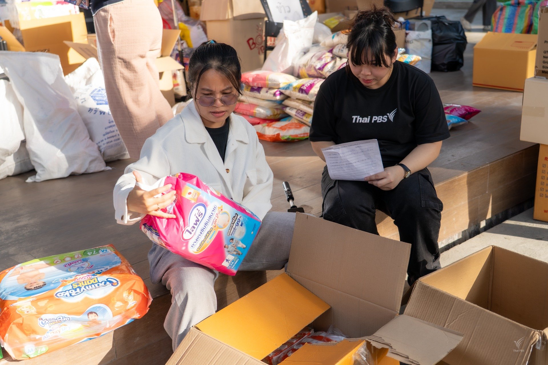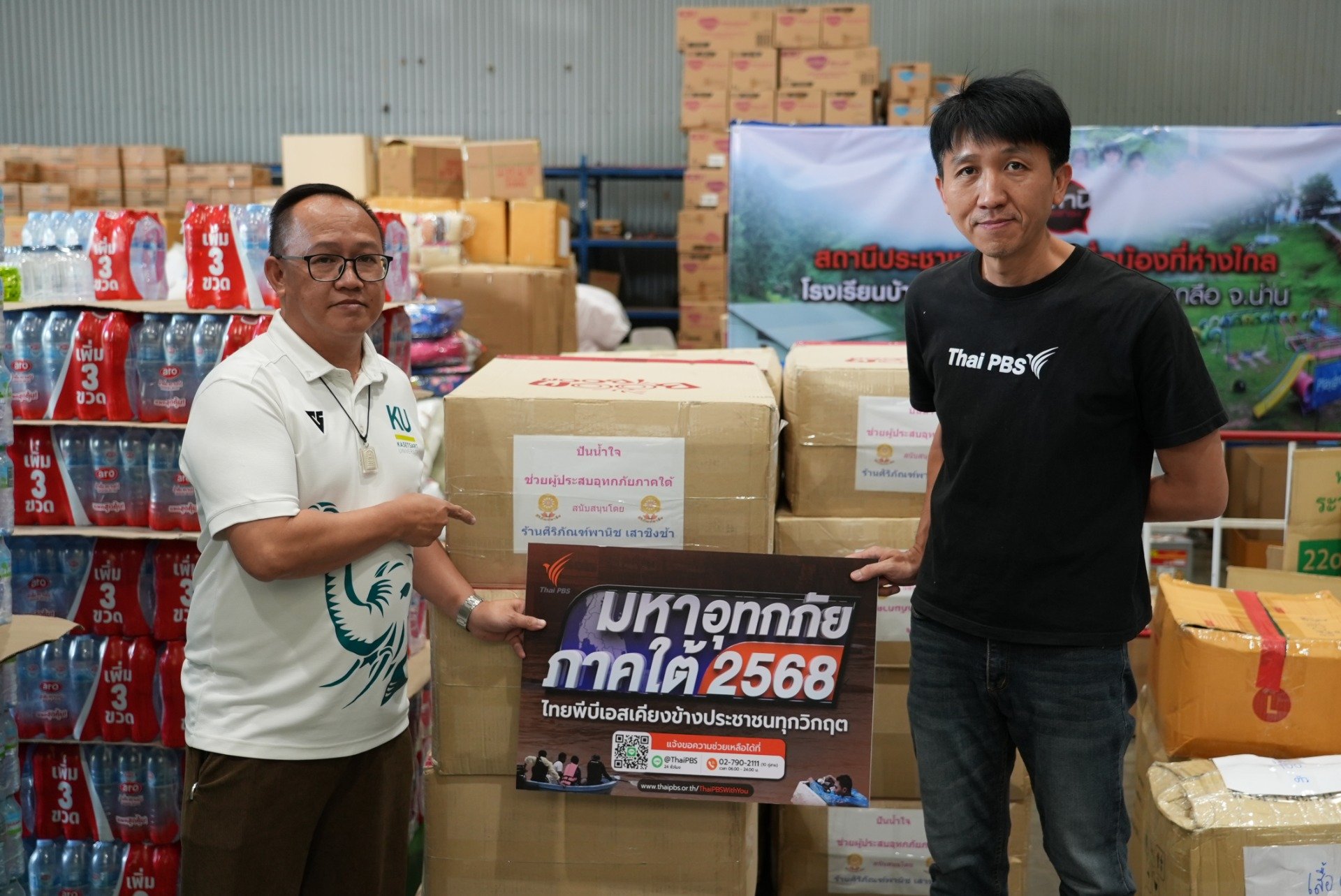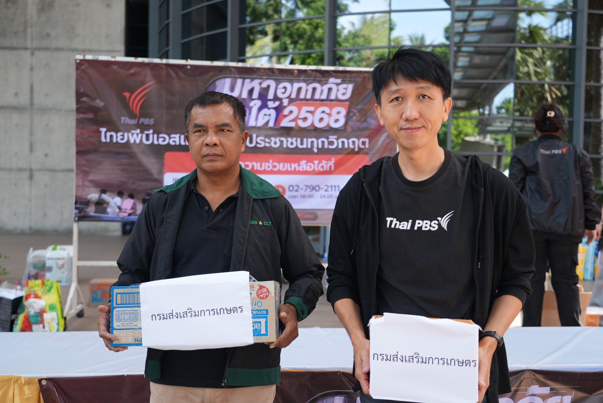ประมาลภาพบรรยกาศ ภารกิจระดมกำลังช่วยน้ำท่วมหาดใหญ่ ของ "ศูนย์ประสานความช่วยเหลือมหาอุทกภัยภาคใต้ 2568" วันที่ 28 พ.ย. ไทยพีบีเอส ร่วมกับทีม “ต้องรอด Up For Thai” ในการ โดยเร่งลำเลียงเสบียงและอุปกรณ์จำเป็นจากกรุงเทพฯ สู่จังหวัดสงขลา ผ่านการสนับสนุนของ สายการบินแอร์เอเชีย และรถบรรทุก 10 ล้อ จากมูลนิธิพุทธภูมิธรรม ถือว่าได้รับการช่วยเหลือขนส่งทั้งทางบกและทางอากาศ ขณะที่มีผู้ให้ความสนใจนำสิ่งของมาร่วมบริจาคจำนวนมาก อาทิ มูลนิธิปันสุข และ Shavich Holding มหาวิทยาลัยเกษตรศาสตร์ กรมส่งเสริมการเกษตร บริษัทฮีโน่มอเตอร์เซลส์ประเทศไทย ข้าววรรณภพ บริษัทไบโอฟาร์มเคมีคอล จำกัด โรงเรียนวรรัตน์ศึกษา โรงเรียนดิลกศึกษา สวทช. บริษัทรักษาความปลอดภัย guard force cash solution ประเทศไทย จำกัด รวมถึงภาคประชาชนที่ยังคงทยอยนำสิ่งของมาร่วมบริจาคให้อย่างไม่ขาดสาย เพื่อส่งไปยัง สำนักงาน กสทช. เขต 4 อ.หาดใหญ่ ที่ให้การสนับสนุนสถานที่จัดเก็บและจัดทำถุงยังชีพ โดยมีเจ้าหน้าที่จิตอาสาไทยพีบีเอส ทำหน้าที่ลำเลียงและคัดแยกสิ่งของที่ได้รับบริจาค อาทิ ข้าวสาร อาหารกระป๋อง อาหารแห้ง น้ำดื่ม ยารักษาโรค ผ้าอนามัย นม ผ้าอ้อม เสื้อผ้า อาหารสัตว์เลี้ยง และของจำเป็นอื่น ๆ ขนขึ้นรถเพื่อนำไปสู่พื้นที่ประสบอุทกภัย