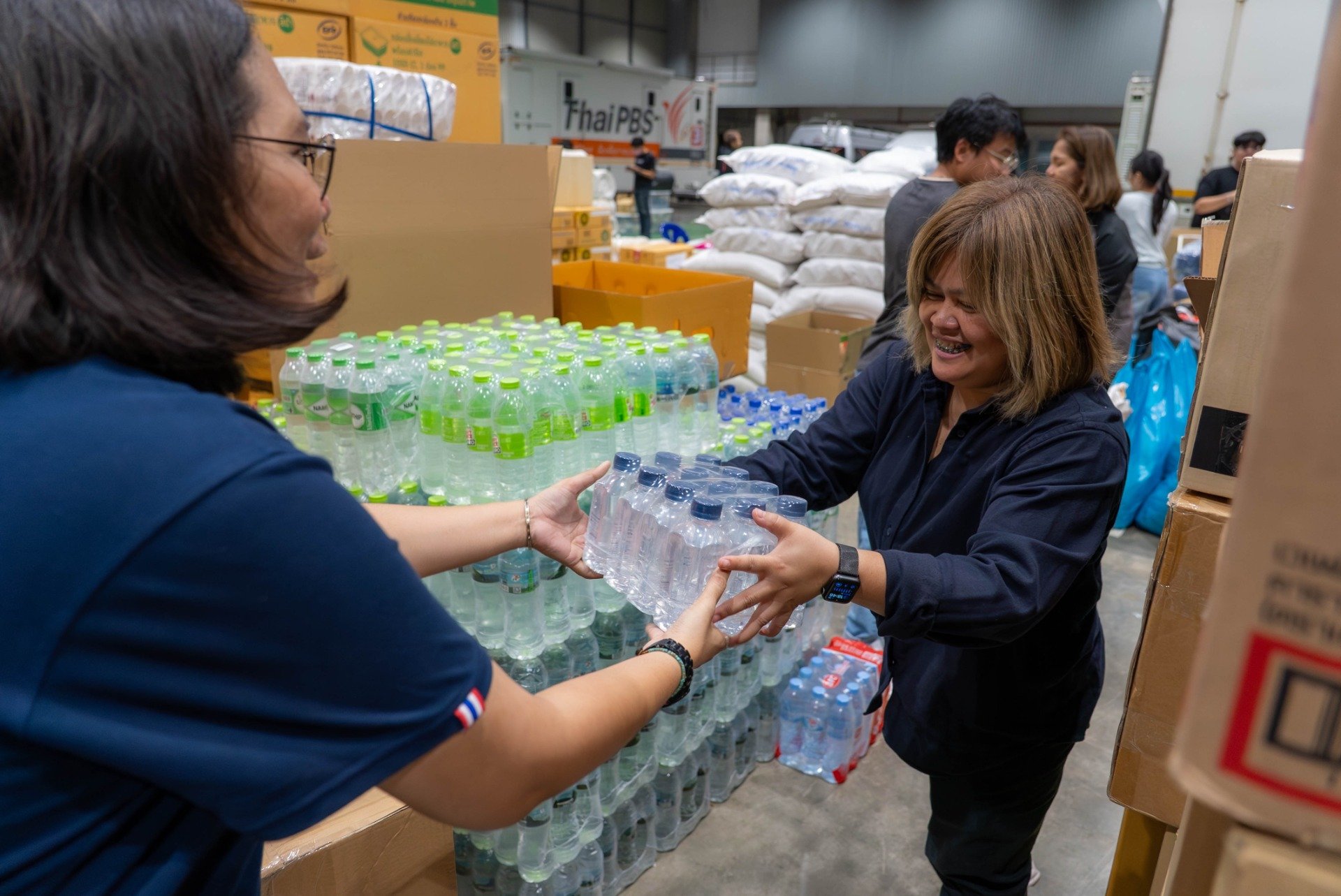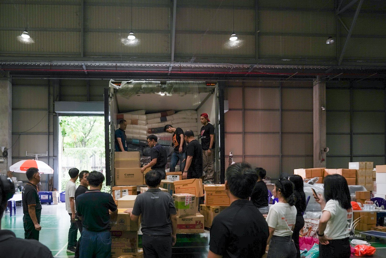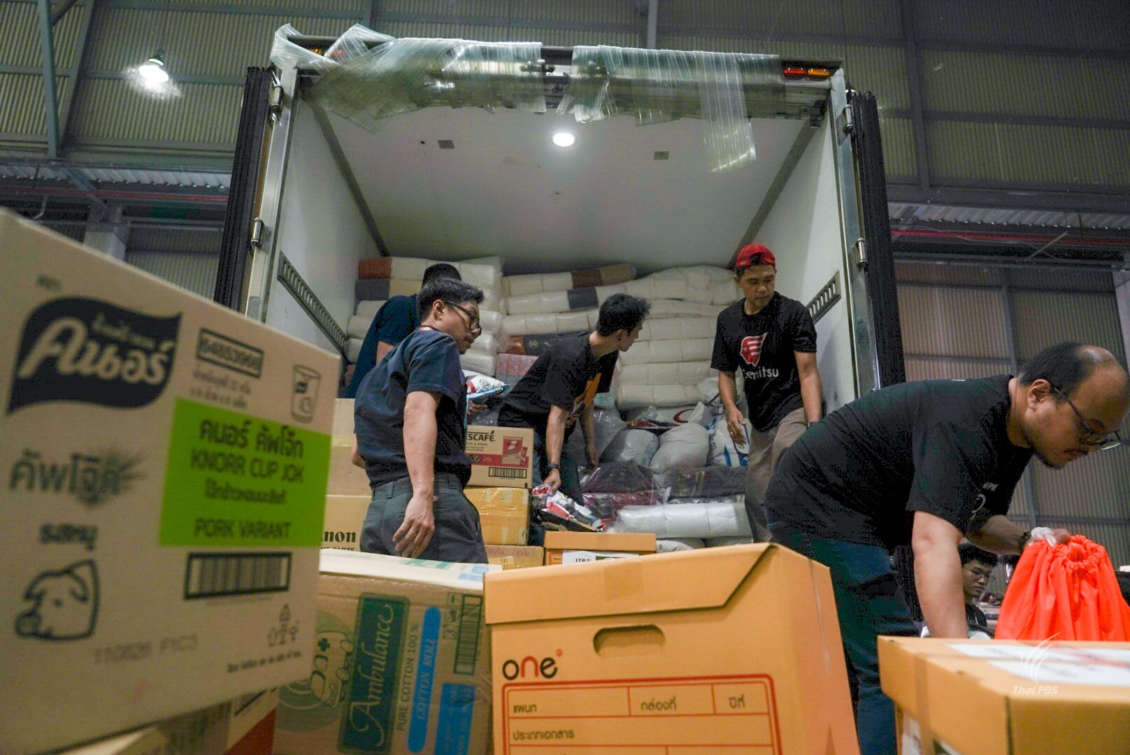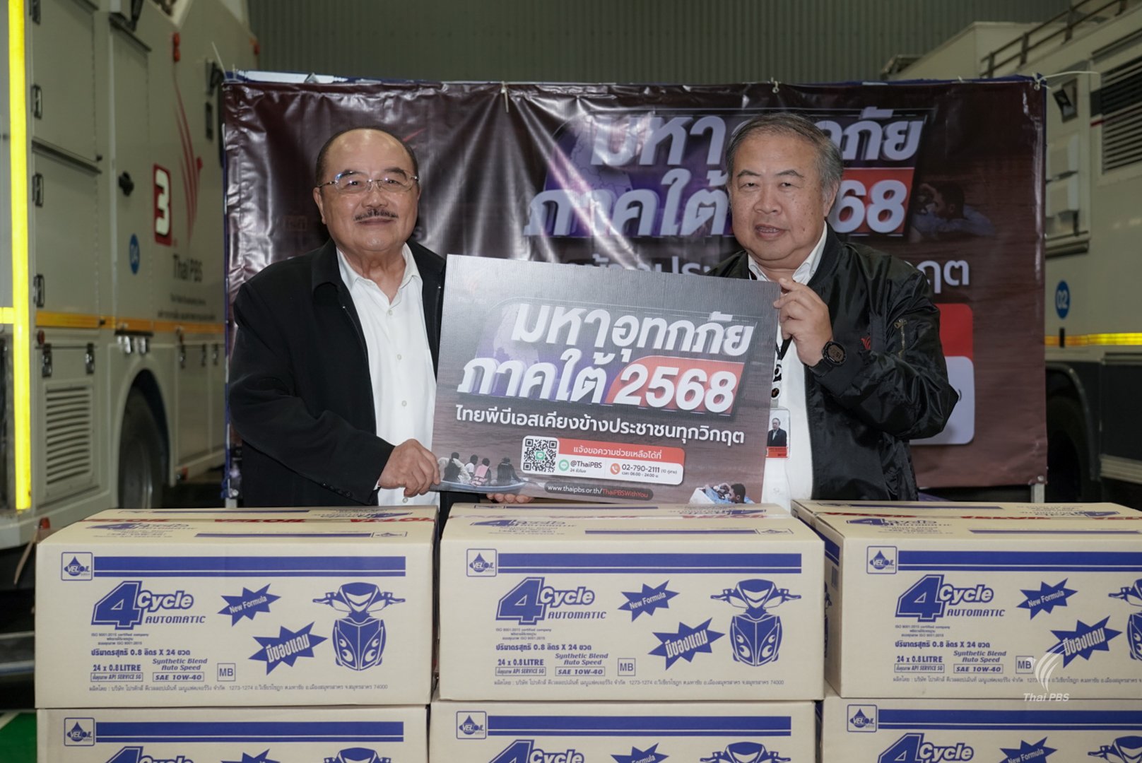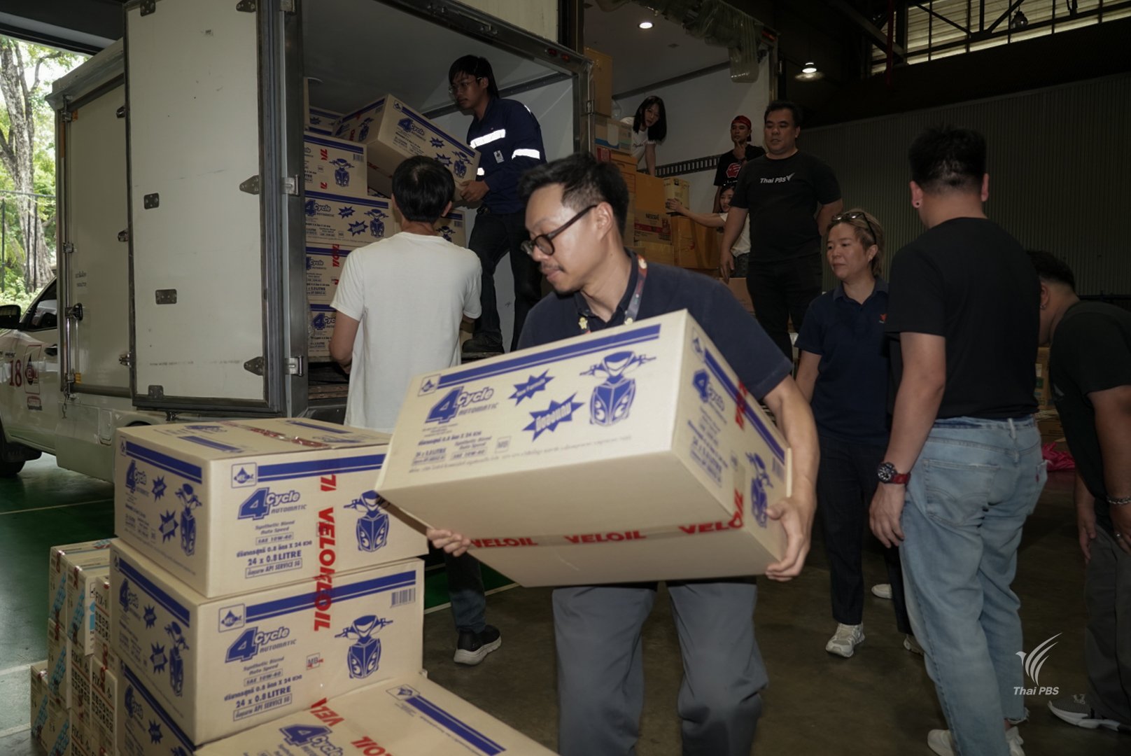 ประมาลภาพบรรยกาศ ภารกิจระดมกำลังช่วยน้ำท่วมหาดใหญ่ ของ "ศูนย์ประสานความช่วยเหลือมหาอุทกภัยภาคใต้ 2568" วันที่ 28 พ.ย. ไทยพีบีเอส ร่วมกับทีม “ต้องรอด Up For Thai” ในการ โดยเร่งลำเลียงเสบียงและอุปกรณ์จำเป็นจากกรุงเทพฯ สู่จังหวัดสงขลา ผ่านการสนับสนุนของ สายการบินแอร์เอเชีย และรถบรรทุก 10 ล้อ จากมูลนิธิพุทธภูมิธรรม ถือว่าได้รับการช่วยเหลือขนส่งทั้งทางบกและทางอากาศ ขณะที่มีผู้ให้ความสนใจนำสิ่งของมาร่วมบริจาคจำนวนมาก อาทิ มูลนิธิปันสุข และ Shavich Holding มหาวิทยาลัยเกษตรศาสตร์ กรมส่งเสริมการเกษตร บริษัทฮีโน่มอเตอร์เซลส์ประเทศไทย ข้าววรรณภพ บริษัทไบโอฟาร์มเคมีคอล จำกัด โรงเรียนวรรัตน์ศึกษา โรงเรียนดิลกศึกษา สวทช. บริษัทรักษาความปลอดภัย guard force cash solution ประเทศไทย จำกัด รวมถึงภาคประชาชนที่ยังคงทยอยนำสิ่งของมาร่วมบริจาคให้อย่างไม่ขาดสาย เพื่อส่งไปยัง สำนักงาน กสทช. เขต 4 อ.หาดใหญ่ ที่ให้การสนับสนุนสถานที่จัดเก็บและจัดทำถุงยังชีพ โดยมีเจ้าหน้าที่จิตอาสาไทยพีบีเอส ทำหน้าที่ลำเลียงและคัดแยกสิ่งของที่ได้รับบริจาค อาทิ ข้าวสาร อาหารกระป๋อง อาหารแห้ง น้ำดื่ม ยารักษาโรค ผ้าอนามัย นม ผ้าอ้อม เสื้อผ้า อาหารสัตว์เลี้ยง และของจำเป็นอื่น ๆ ขนขึ้นรถเพื่อนำไปสู่พื้นที่ประสบอุทกภัย